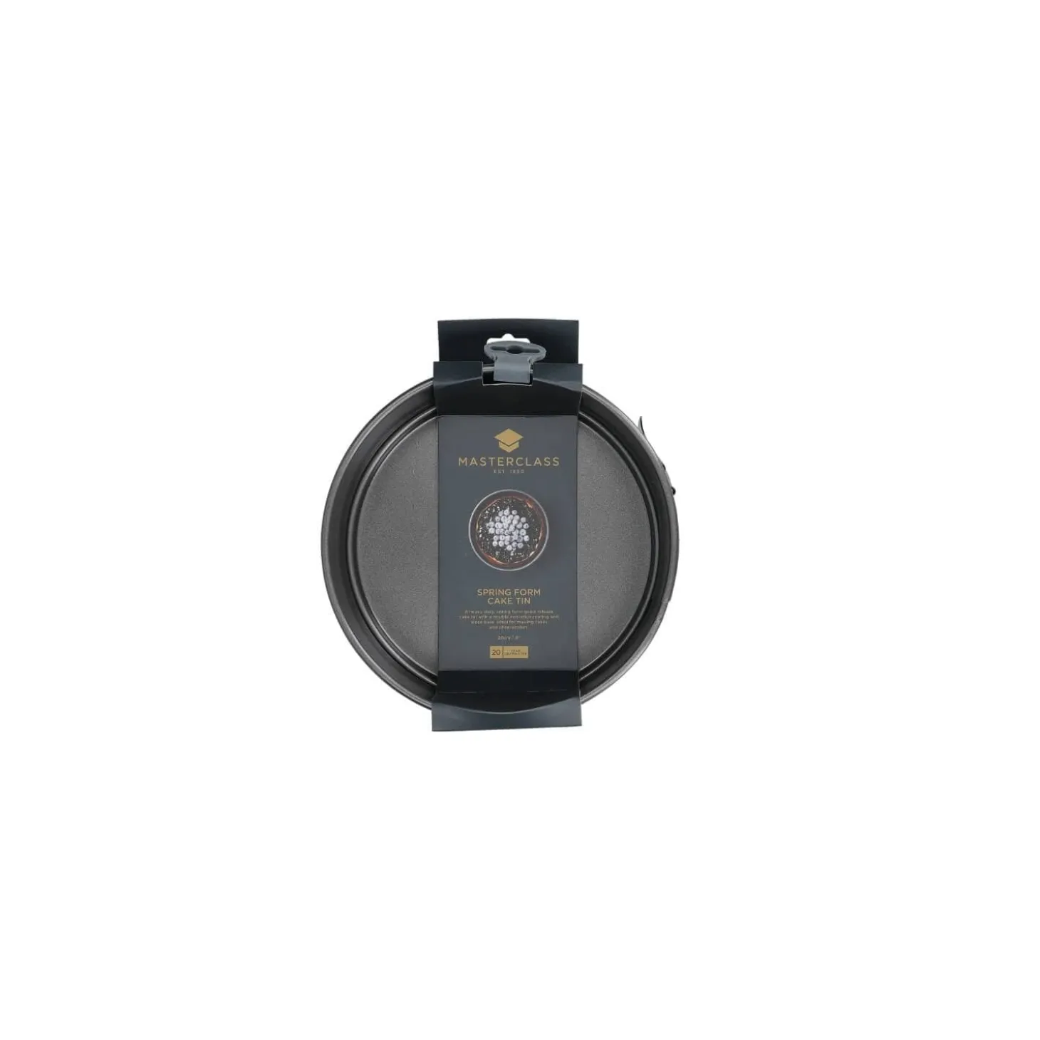 The Kitchencraft Masterclass 20cm Round Non-Stick Spring Form Cake Tin is not only made from quality carbon steel with a non-stick coating for excellent heat distribution, it also features a handy spring-form release that enables cooks to carefully release the sides of the tin away from fragile contents such as cakes and cheesecakes quickly and without drama.