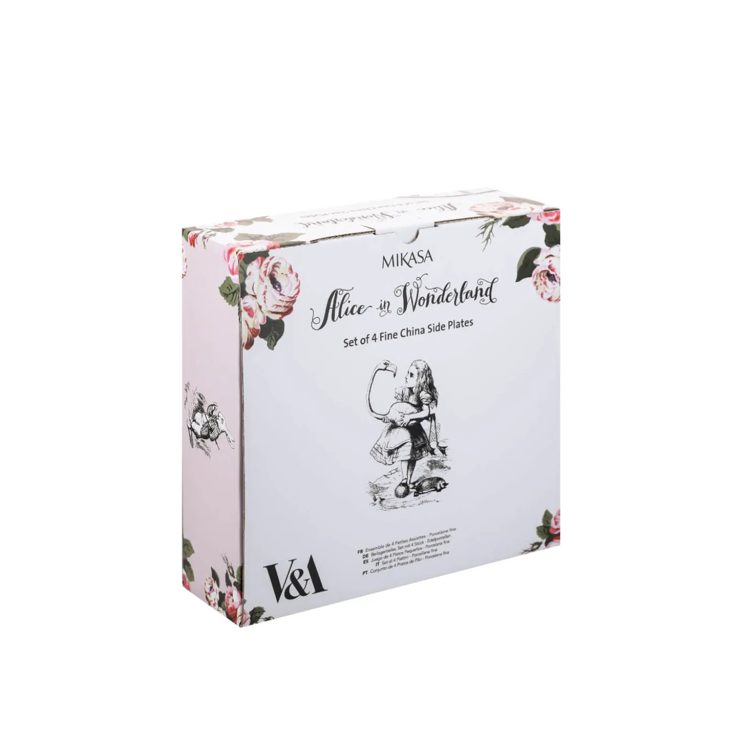Mikasa and V&A present the Alice in Wonderland Set of 4 Side Plates. Featuring intricate illustrations inspired by Sir John Tenniel’s renowned and uniquely British work, this beautiful collection blends timeless elegance with whimsical charm. The design, adorned with pastel colours and the V&A’s signature floral patterns, is delightfully completed with delicate pencil drawings of iconic characters from the much-loved book.
