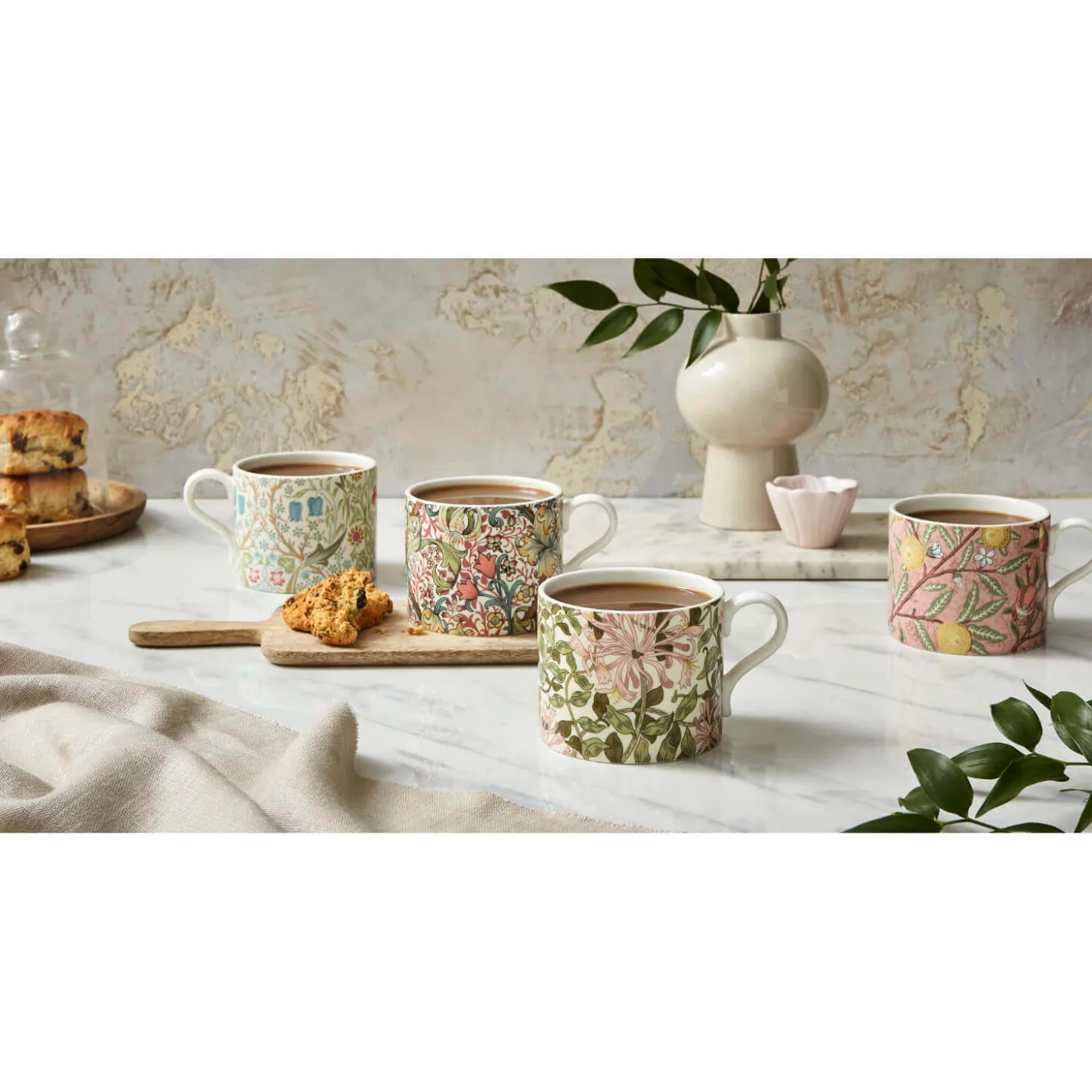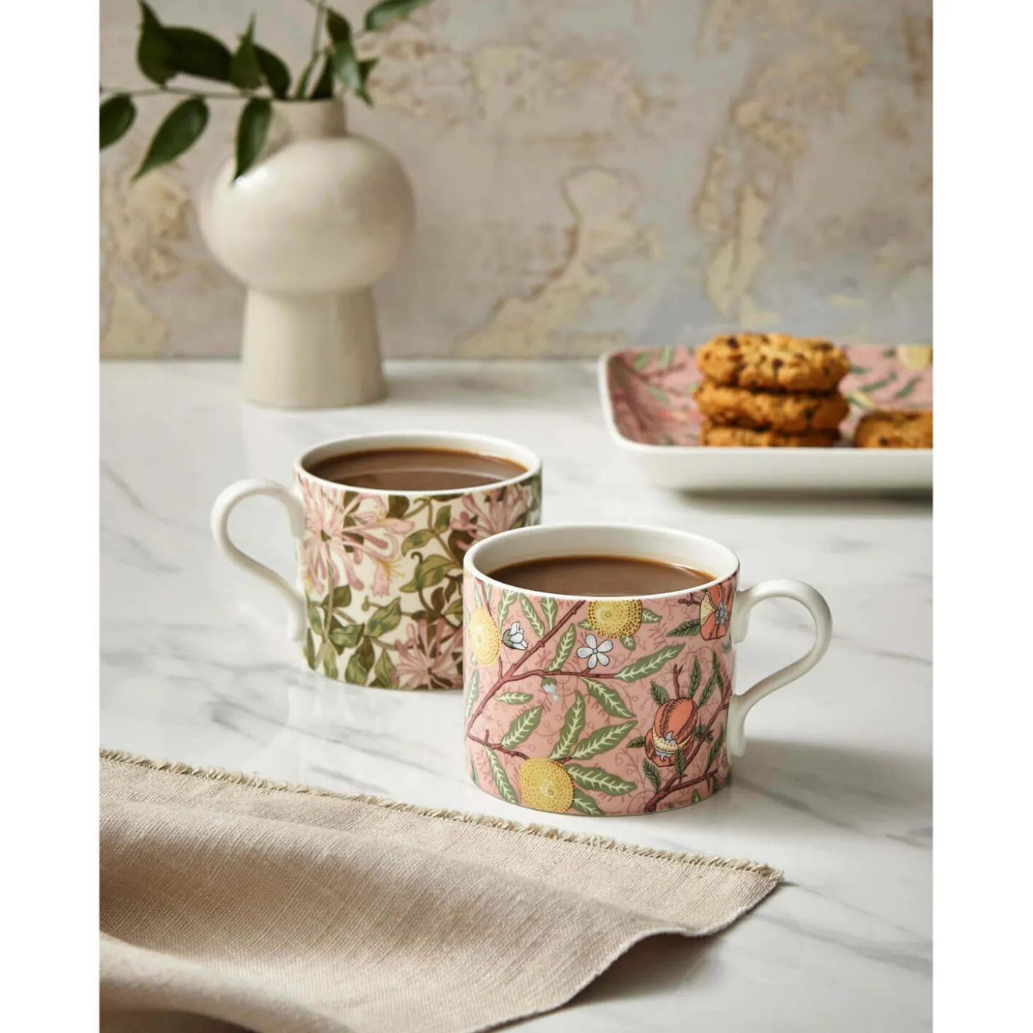 Morris & Co presents the Fruit & Honeysuckle Mug Set featuring the iconic botanical patterns of William Morris designed to add a warm cottage feel to your kitchen creating a beautiful calm and restful touch to your home. This stunning floral set would make a marvellous gift or a special treat for yourself.