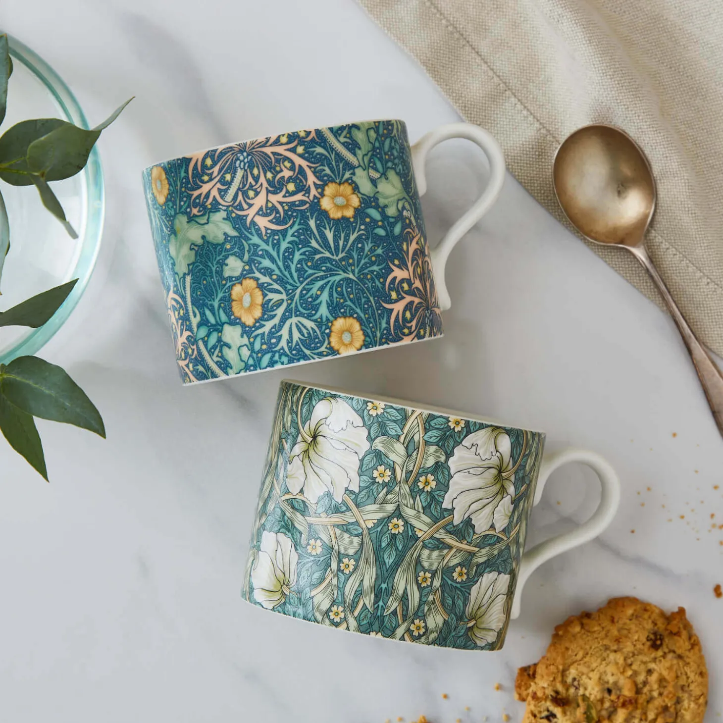 Morris & Co presents the Seaweed & Pimpernel Mug Set featuring the iconic botanical patterns of William Morris designed to add a warm cottage feel to your kitchen creating a beautiful calm and restful touch to your home. This stunning floral set would make a marvellous gift or a special treat for yourself.