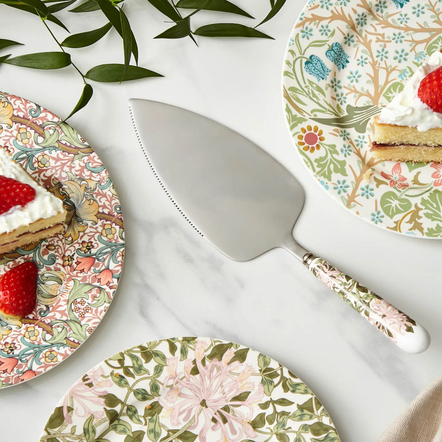 Morris & Co presents their Cake Slice in Honeysuckle design. Featuring the iconic botanical patterns of May Morris, William Morris’s daughter in 1883 and designed to add a warm cottage feel to your kitchen creating a beautiful, calm and restful touch to your home. The stunning honeysuckle handle detail creates an impressive show of floral patterns that would make a striking addition to any tea party.
