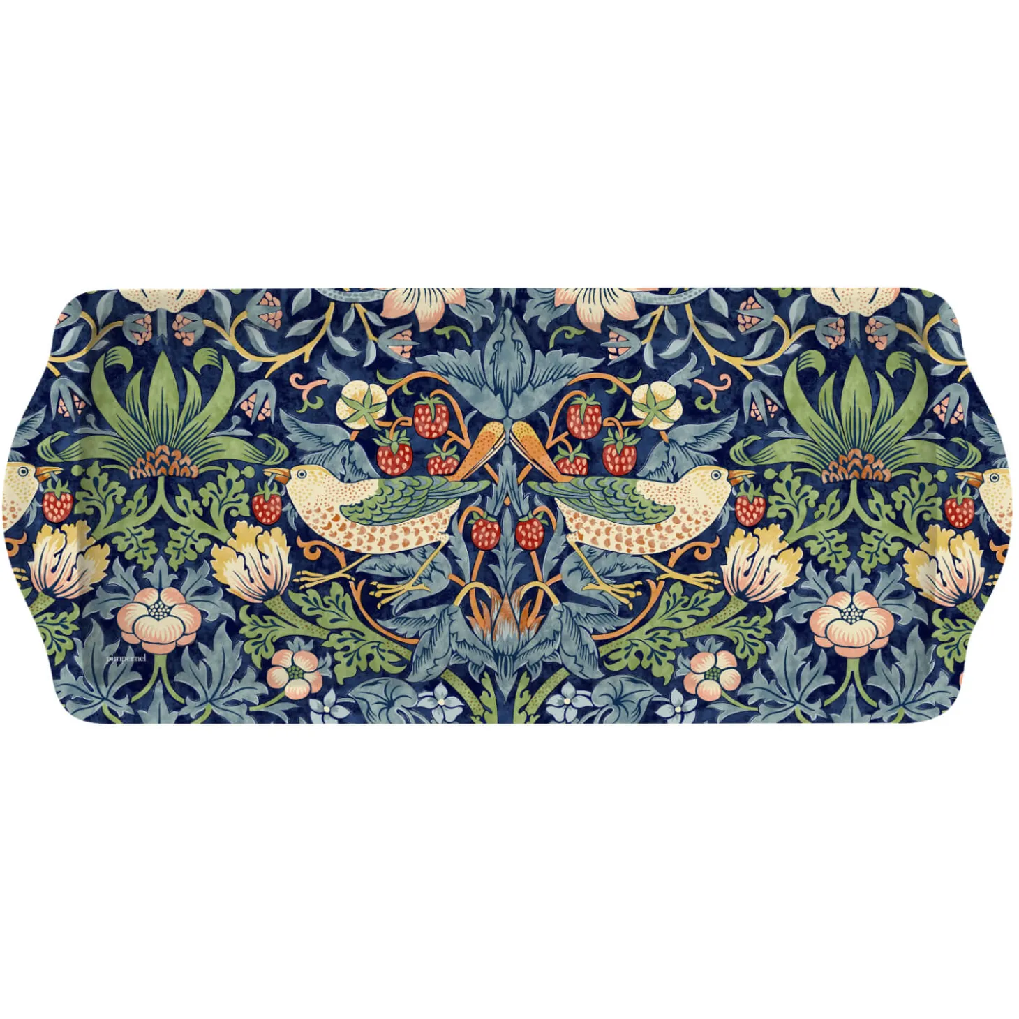 Morris & Co presents the Strawberry Thief Sandwich Tray in Blue. Featuring the botanical patterns of William Morris designed to add a warm cottage feel to your kitchen creating a beautiful, calm and restful touch to your home. The impressive Strawberry Thief design and striking blue shades make this tray a joy to serve your sandwiches, snacks and drinks to friends. With the iconic cheeky bird pecking at his strawberries this versatile tray would make a wonderful gift or a special treat for yourself.Â