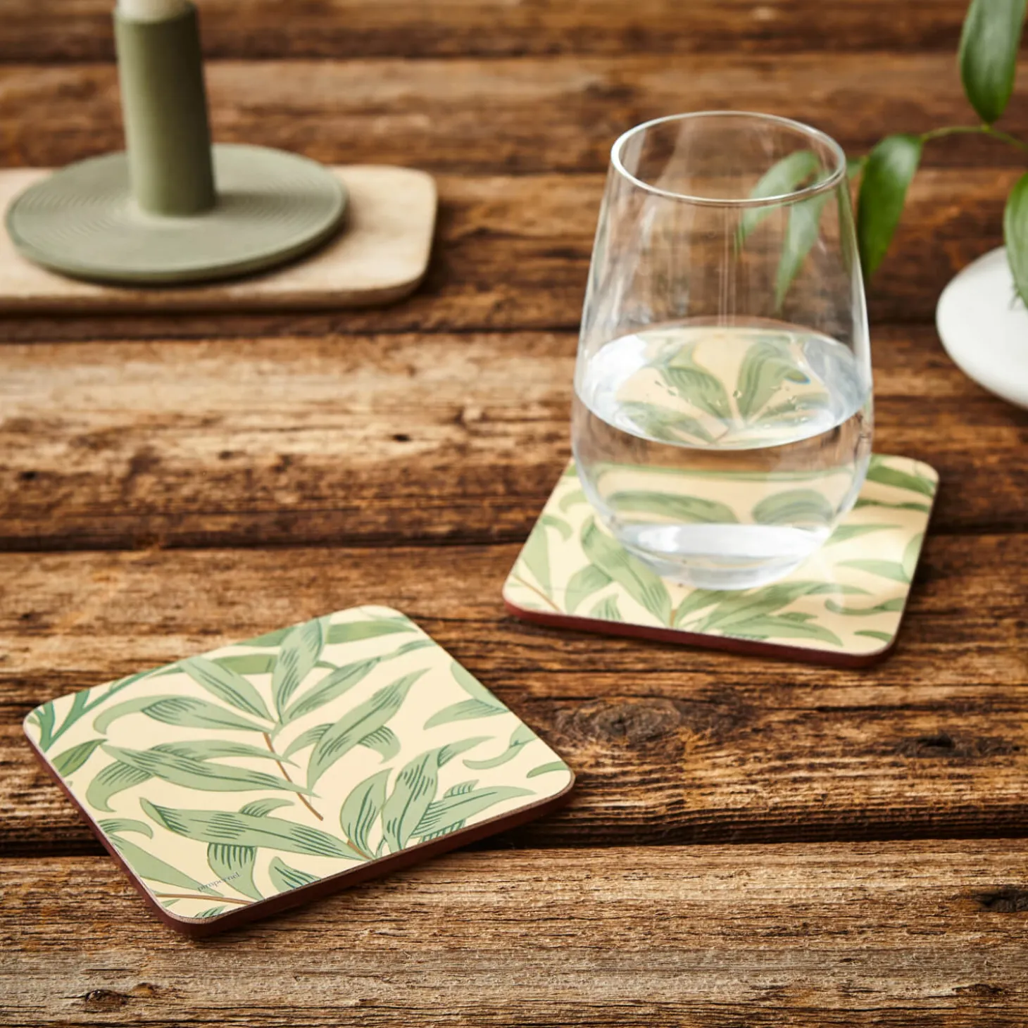 Morris & Co presents the Willow Bough Coaster set in Green. Featuring the iconic botanical patterns of William Morris designed to add a warm cottage feel to your kitchen creating a beautiful, calm and restful touch to your home. The impressive Willow Bough design with its gentle willow branches adds a special touch to your much deserved cup of tea or coffee.Â