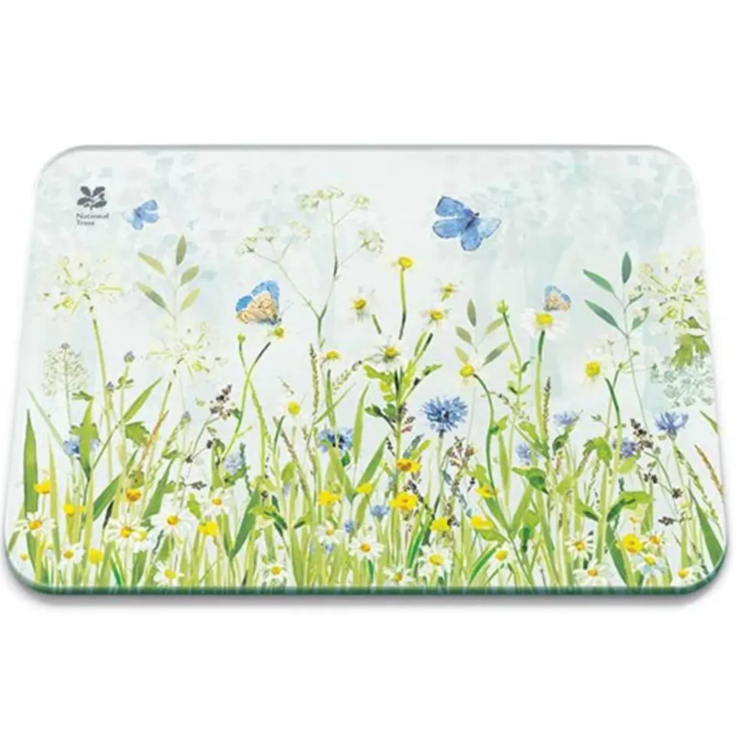 This beautiful National Trust Glass Large Worktop Protector, featuring an illustration of blue butterflies amongst beautiful wildflowers, represents the work that the National Trust is doing to protect the globally endangered ‘Large Blue’ butterfly that was declared extinct in Britain in the late 1970s. The butterfly is now flourishing in parts of the country thanks to numerous conservation projects. Made from toughened glass, the worktop savers are heat resistant and scratchproof, making them ideal for being a hygienic cutting surface and a worktop protector for your hot pots and pans to rest on. These glass worktop savers are made in the UK by Tuftop and come in a range of different designs.