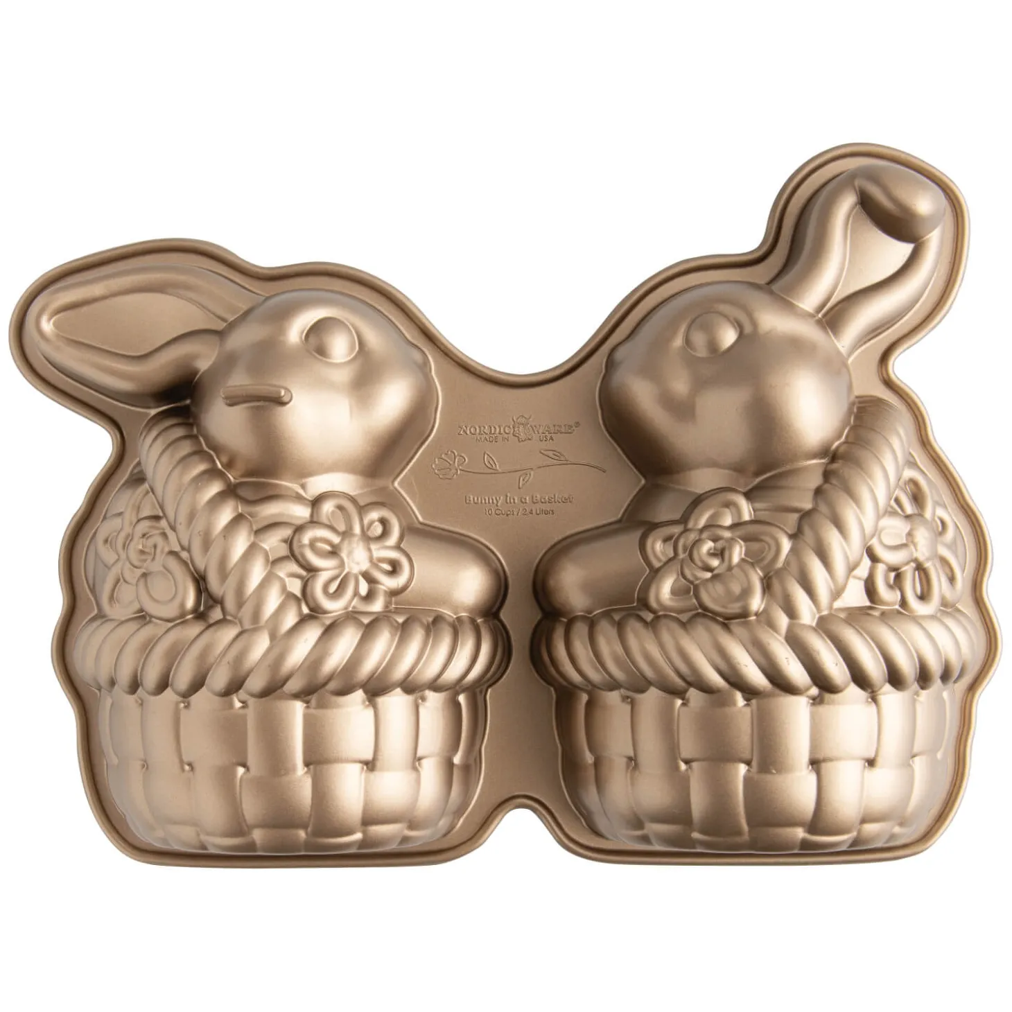 Nordic Ware presents the Bunny In A Basket Cake Pan in Toffee. Perfect for creating a stunning 3D Easter cake for your family and friends when entertaining. Made from high-quality cast aluminium, this pan ensures even heat distribution, resulting in perfectly baked cakes every time. The premium non-stick coating allows for effortless release, preserving intricate details with ease. Ideal for entertaining, simply decorate your cake with a dusting of icing sugar or cocoa powder for a beautiful finish.