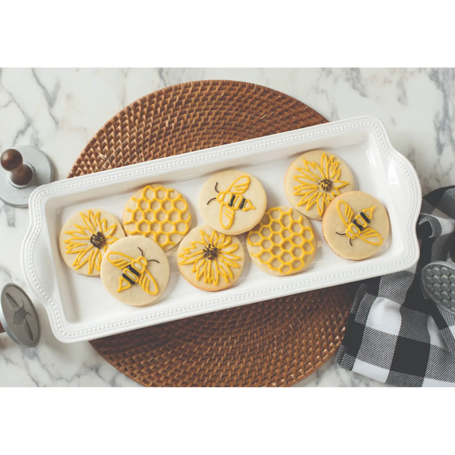 Nordic Ware presents the Set of 3 Cookie Stamps in Honey Bees design, fabulous for elevating your biscuit bakes. The stunning flower, honeycomb and bee designs are perfect for honey-based cookies which are sure to impress friends and family at parties or afternoon tea. The modern detailed patterns and hardwood handles are easy to use and would make a wonderful gift for nature and bee lovers.