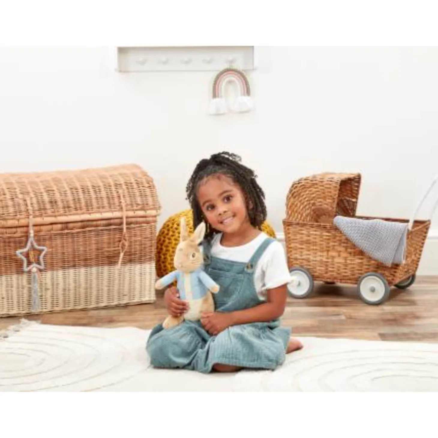 Presenting the Peter Rabbit Large Soft Toy, inspired by the much-loved character created by Beatrix Potter. Suitable from birth and crafted from luxuriously soft fabric, this teddy is perfect for cosy snuggles at storytime. Featuring his iconic blue jacket and big floppy ears this beautiful toy makes an ideal cuddly companion for little ones.