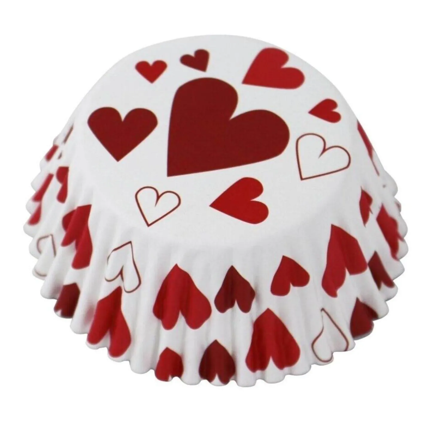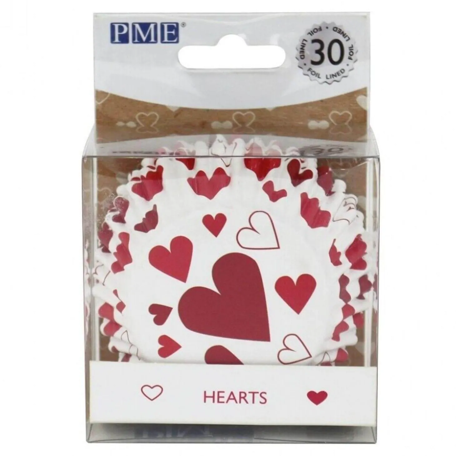 Serve cupcakes and fairy cakes in style with this pack of 30 ‘Hearts’ cupcake cases from PME. Consisting of bright red hearts on a white background foil lined cases to brighten up parties and celebrations! A lovely way to show off your homebakes!