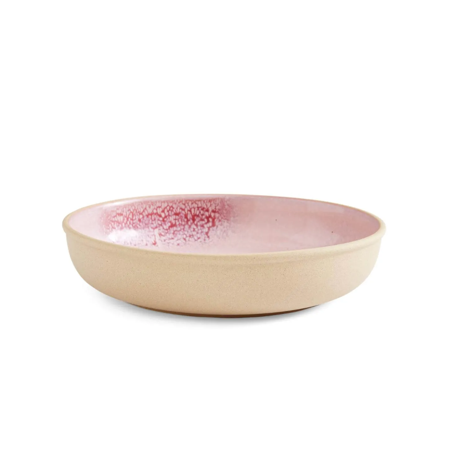 Portmeirion presents the Low Bowl in Rose Quartz as part of their Minerals collection. Each item in this collection is sculpted with recycled organic clay, featuring unique textures and details. The inside curves are coated with a reactive glaze in a beautiful hue, reflecting the rose quartz gemstone, whilst the underside has a lovely stoneware texture. A truly lovely bowl that complements other items in this great collection from Portmeirion.