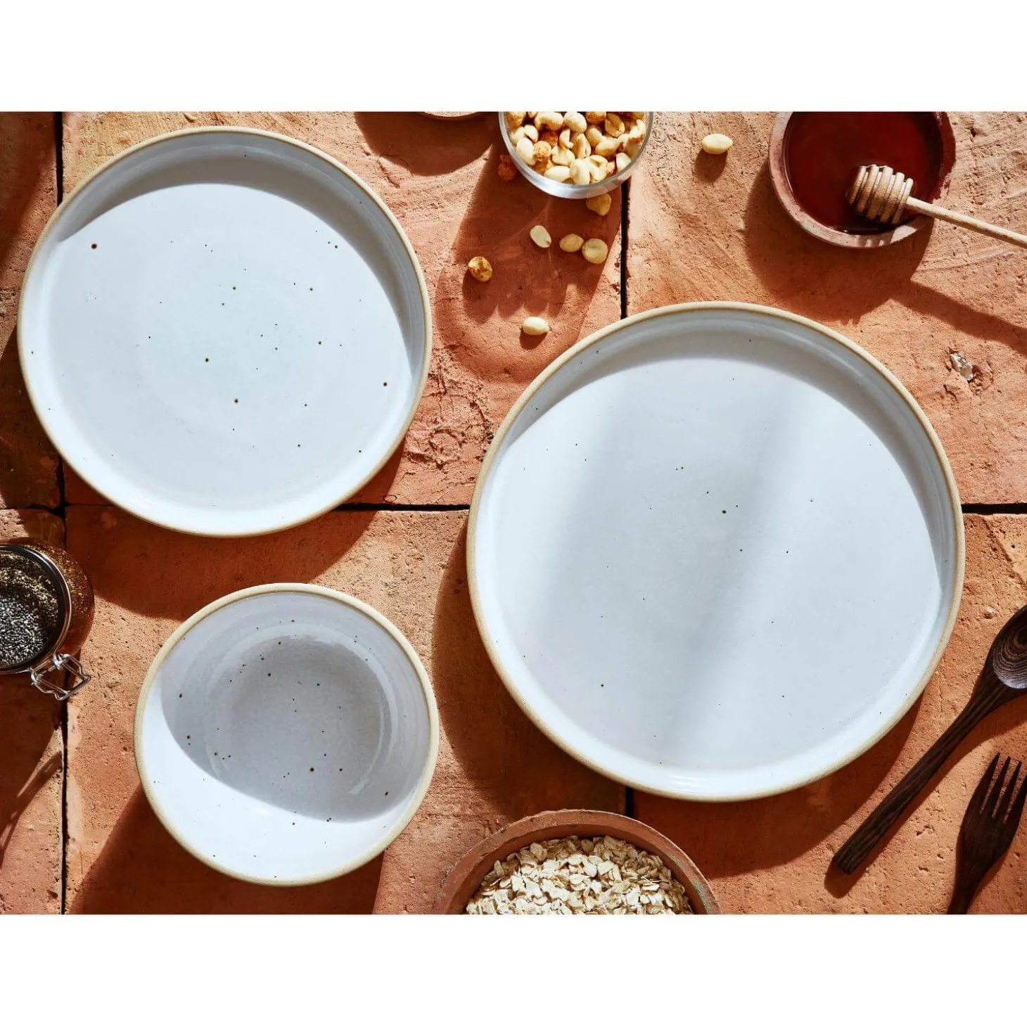 - Textured underside with a reactive glazed surface