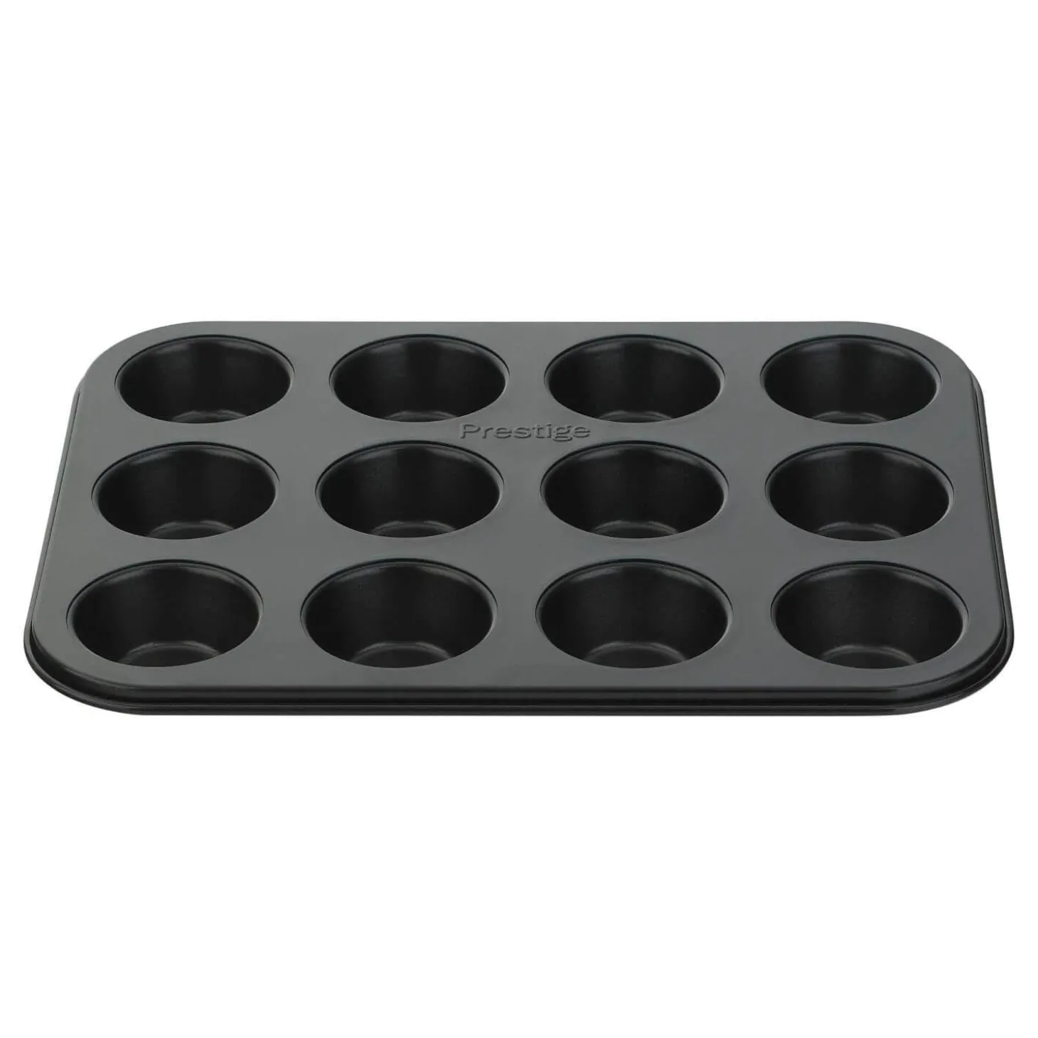 The Inspire mini muffin tin from Prestige has been created from heavy-gauge carbon steel with the purpose of providing exceptional heat conduction. This item features twelve small cups perfect for creating miniature size muffins and the tough non-stick surface ensures easy food release.