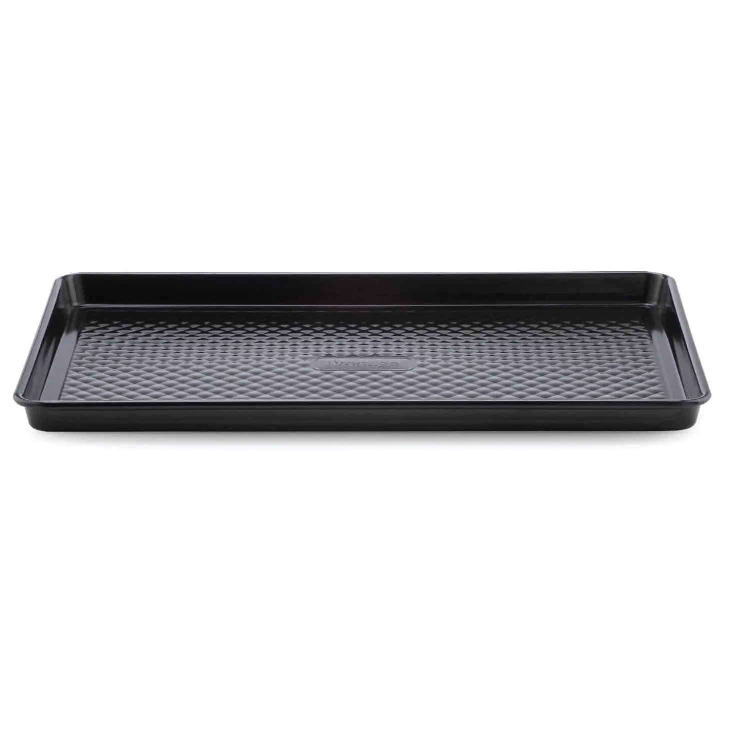 The Inspire oven tray from Prestige has been created from heavy-gauge carbon steel with the purpose of providing exceptional heat conduction. On the surface is a unique Cushion Smart design which improves browning and food release. This item is baking a variety of foods and includes a 25-year guarantee for added peace of mind.