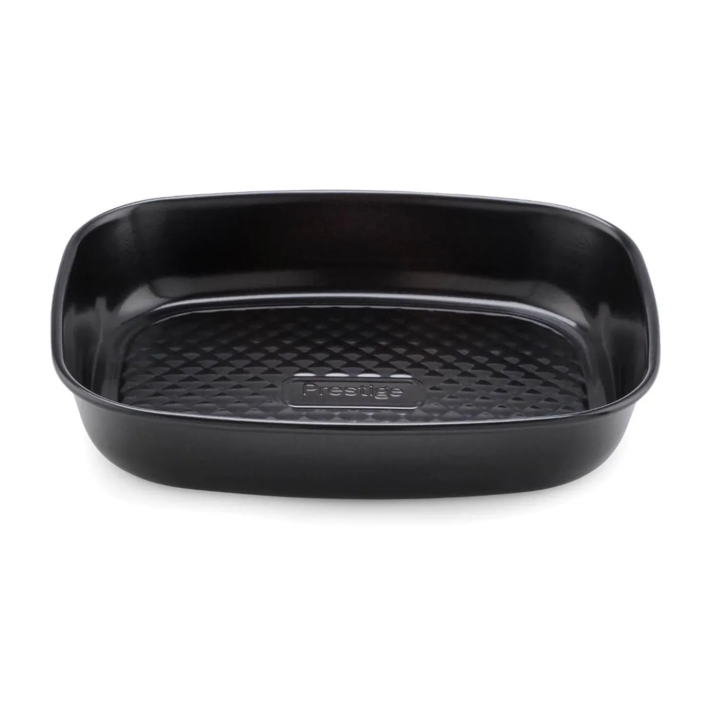 The Inspire small roasting tin from Prestige has been created from heavy-gauge carbon steel with the purpose of providing exceptional heat conduction. On the surface is a unique Cushion Smart design which improves browning and food release making it perfect for roasting joints of meat.