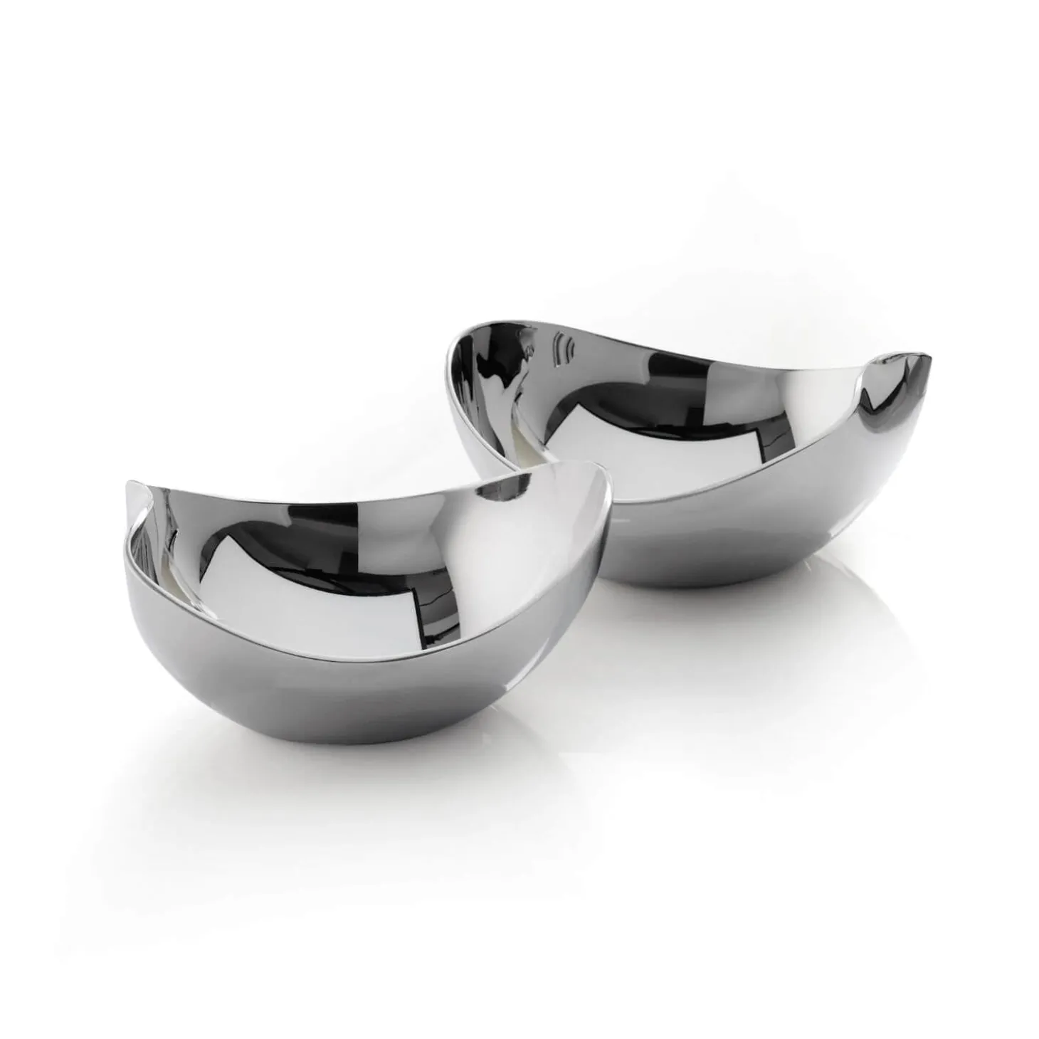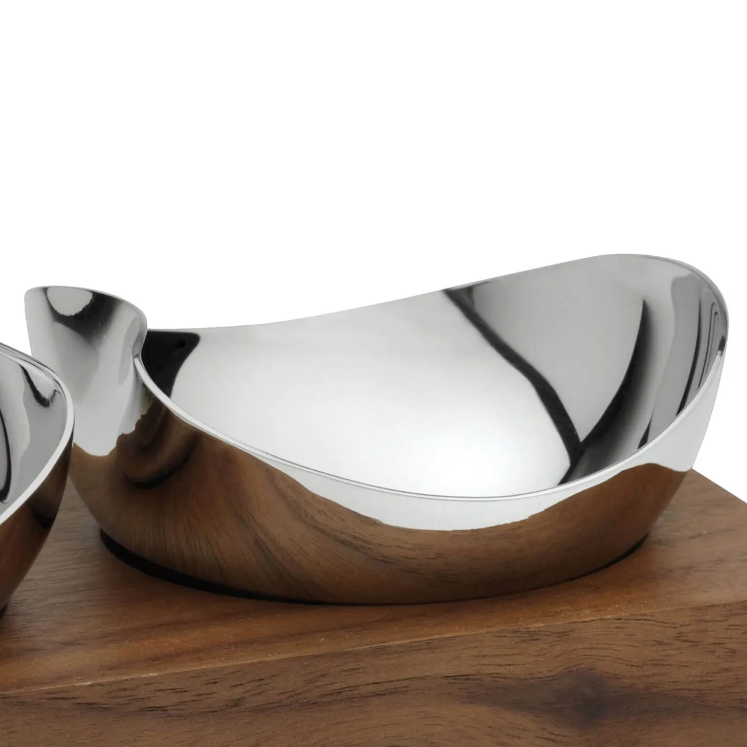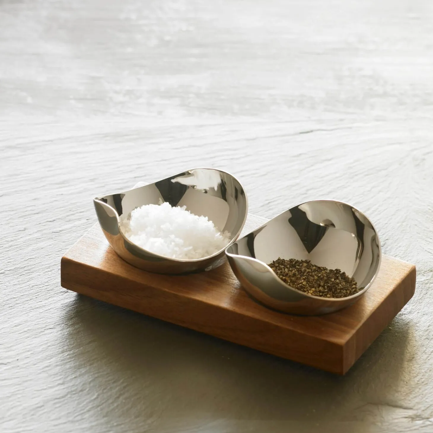 Robert Welch presents the Drift Pinch Pots, beautifully made from 18|10 stainless steel with a mirror polish, these pinch pots are finished by hand and sit on a stunning oiled walnut base. Ideal for salt, pepper, dips and other condiments, this elegant set is designed to bring that something special to your dining table.