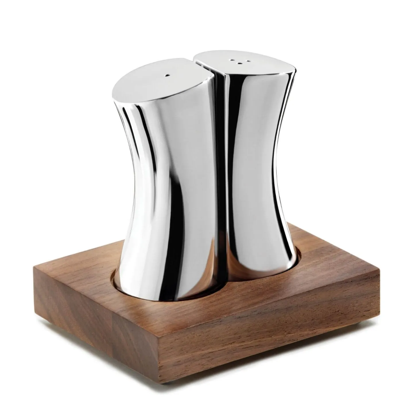 Robert Welch presents the Drift Salt & Pepper Shakers, beautifully made from 18|10 stainless steel with a mirror polish, these shakers sit on a stunning oiled walnut base. This elegant set with its unusual fluid design will bring that something special to your dining table.