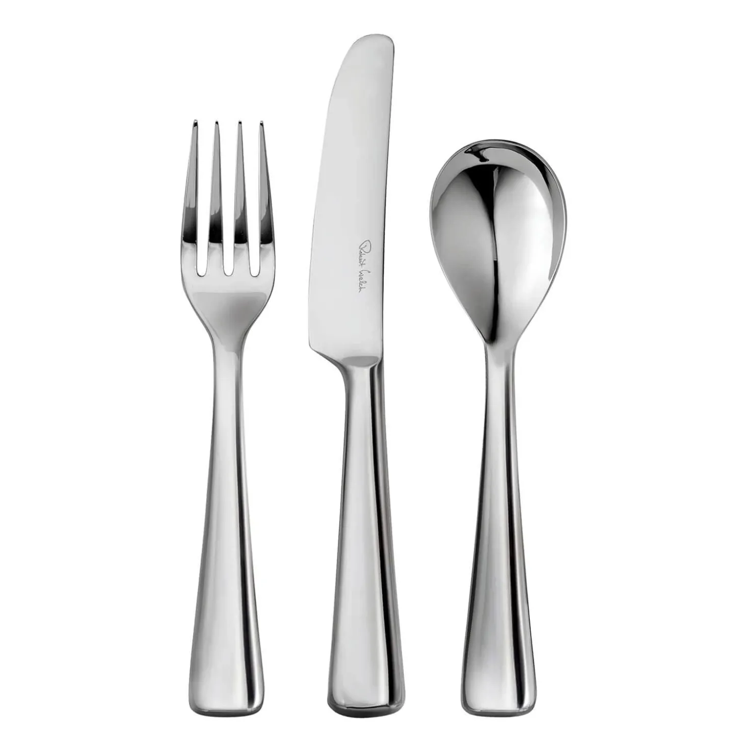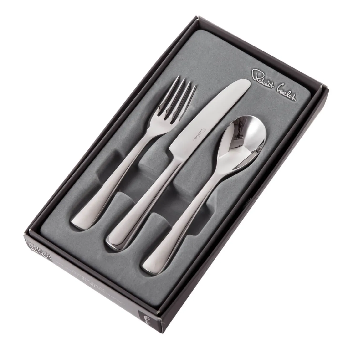 Robert Welch presents Malvern Bright 3 Piece Children’s Cutlery Set. Featuring mirror polished curves and contours finished with a flared square edge. This set will suit any table setting and allows children to eat and feel included with the rest of the family. Created from specially forged hardened stainless steel which will not rust or corrode and is dishwasher safe.Â