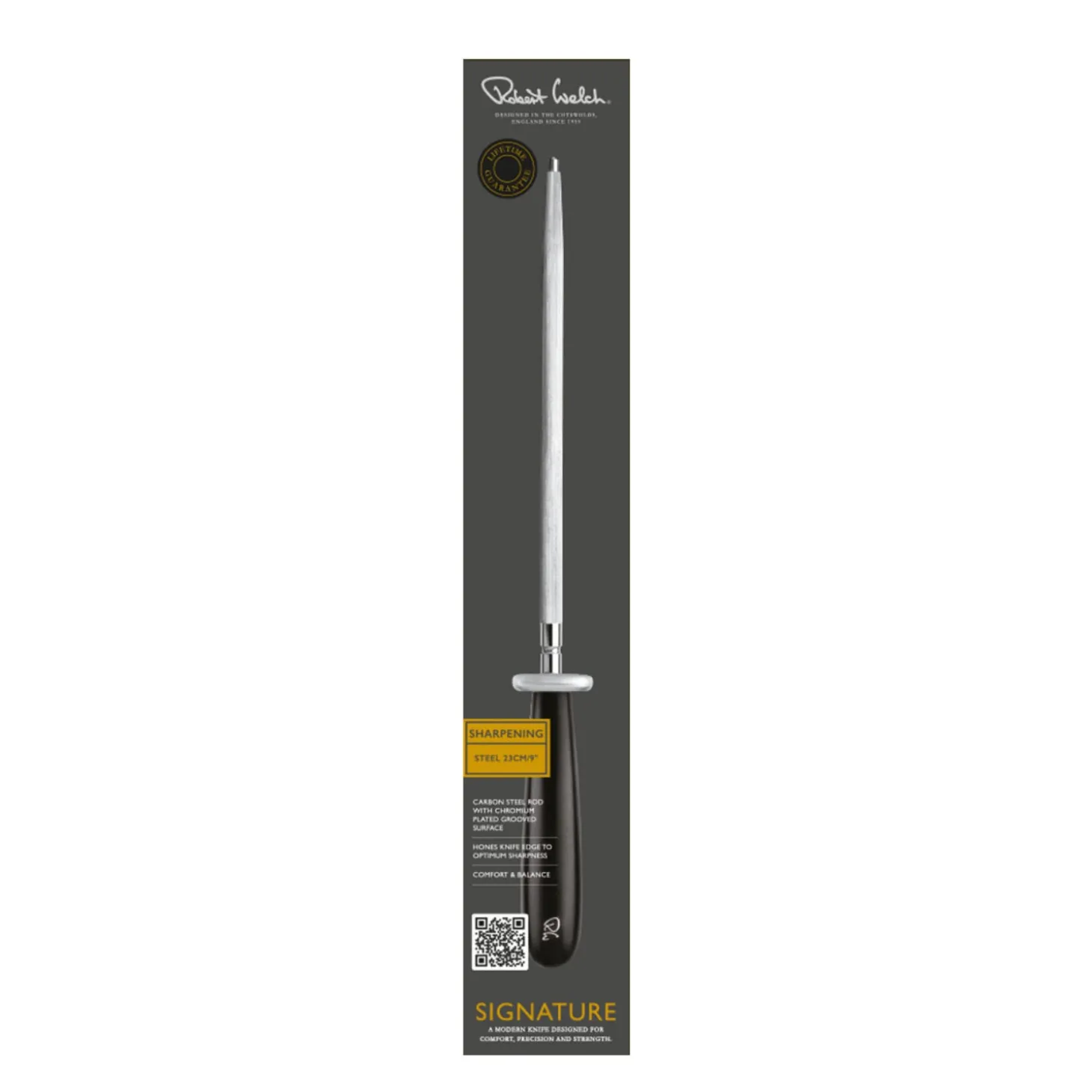 Robert Welch presents the Sharpening Steel as part of his Signature range. This is an essential tool for keeping your knives sharp and ready for use, featuring an ergonomic handle for a comfortable grip, allowing for greater control whilst honing your knives thus keeping them in the very best condition.