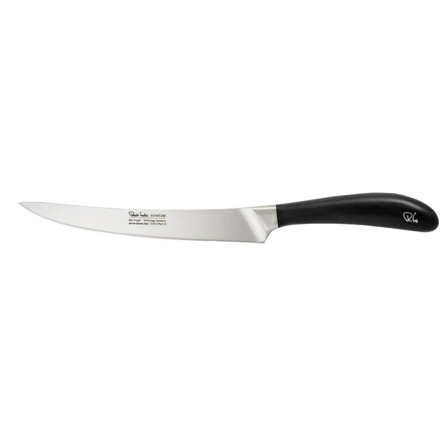 This 20cm Carving knife forms part of the Signature kitchen knife range by Robert Welch. Each item in the collection has been designed with comfort, precision and strength in mind, created from a single billet of German stainless steel with a hand-sharpened finish of 15° for exceptional sharpness. Includes a lifetime guarantee.