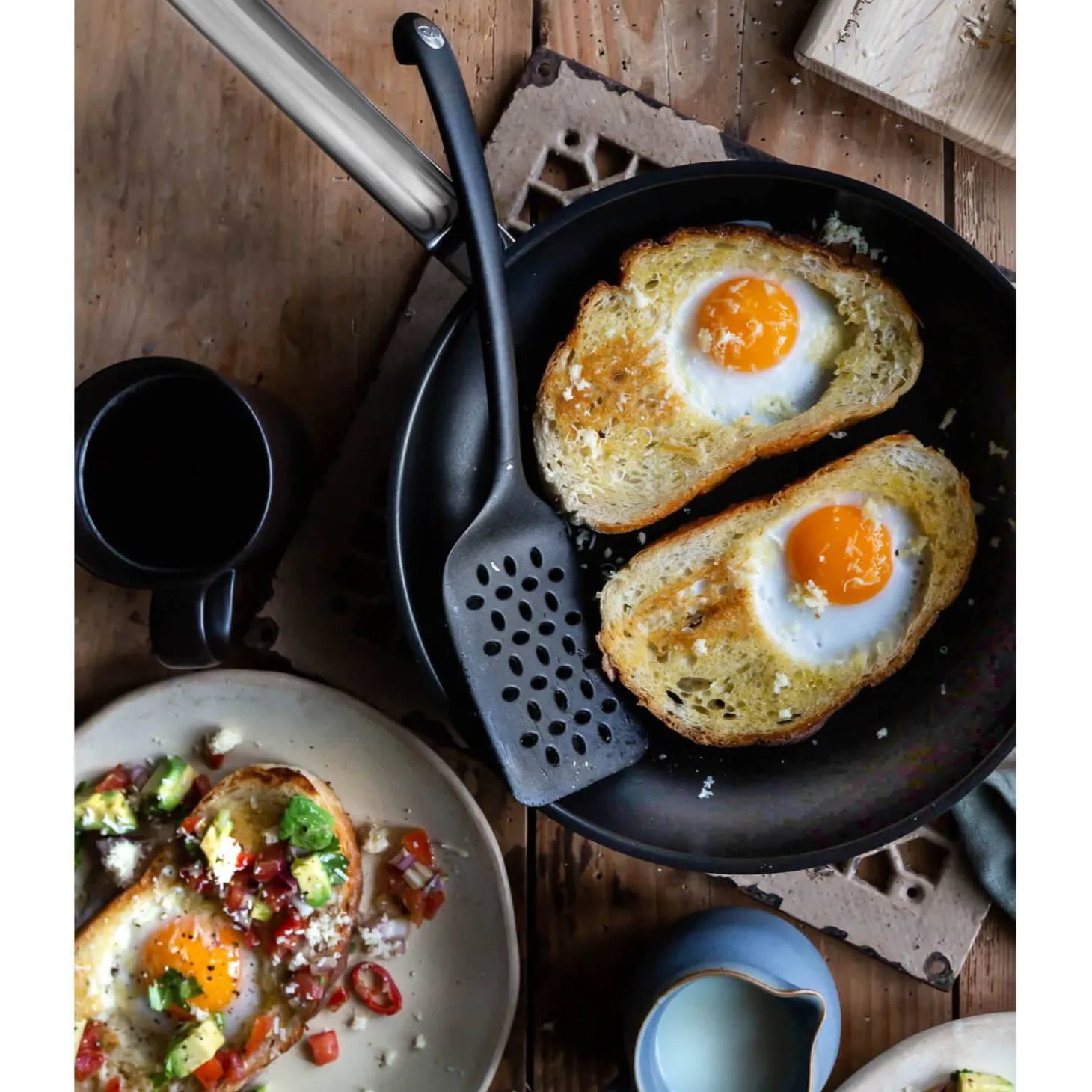 Robert Welch presents the large black nylon turner which is part of the award-winning Signature range. This non-stick spatula is ideal for flipping pancakes, fish cakes and other items which do not need draining, featuring a flexible blade to easily slide under food to flip or serve without any mess.