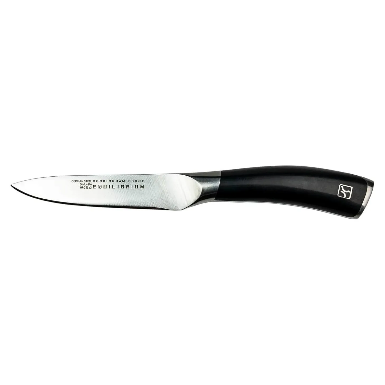 This 10cm Paring knife forms part of the Equilibrium range by Rockingham Forge. Each item in this collection features a high-quality chromium-molybdenum-vanadian steel which has been ice hardened for long lasting sharpness and rust resistance. The knife edge is hand-finished with taper-grinding for a sharper cutting action and also a curved design handle for a more comfortable and easy grip. Perfect for peeling and cutting fruits and vegetables and can also be used when precision is required on the most delicate tasks.