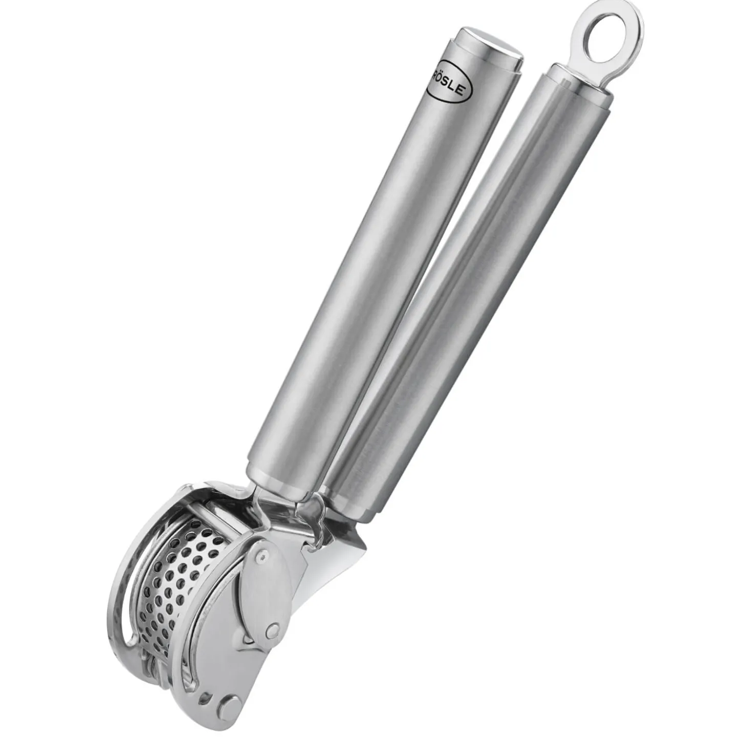 Rosle presents their Garlic Press with Scraper, made from high-quality 18/10 stainless steel, perfect for both professional chefs and home cooks, this durable strong and exceptionally efficient press ensures maximum leverage with minimal effort!
