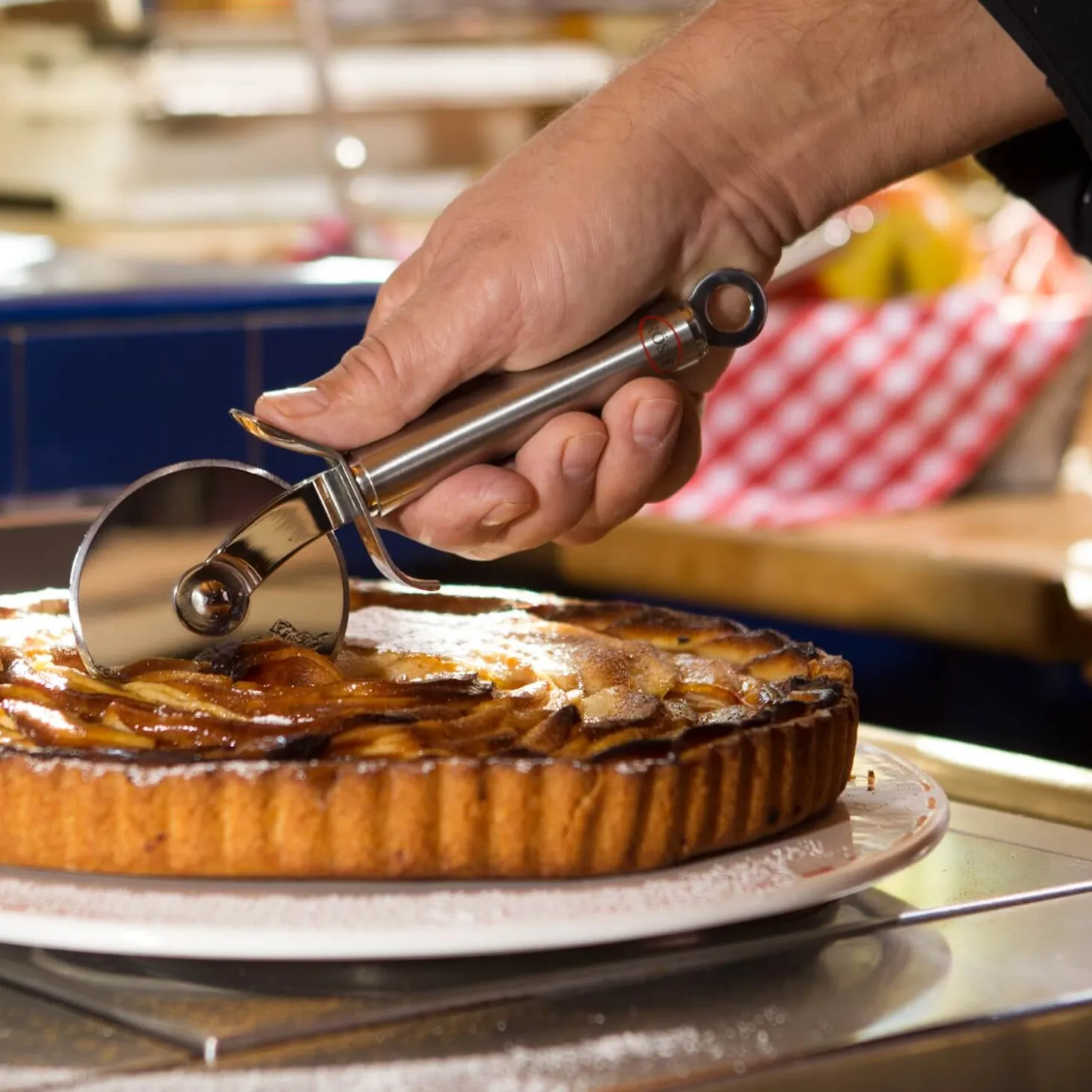 Rosle presents their Pizza Cutter, made from high-quality 18/10 stainless steel, ideal for both professional chefs and home cooks, this durable, strong and sharp blade cuts easily through both thin and super thick crusts on pizzas, creating perfect slices.