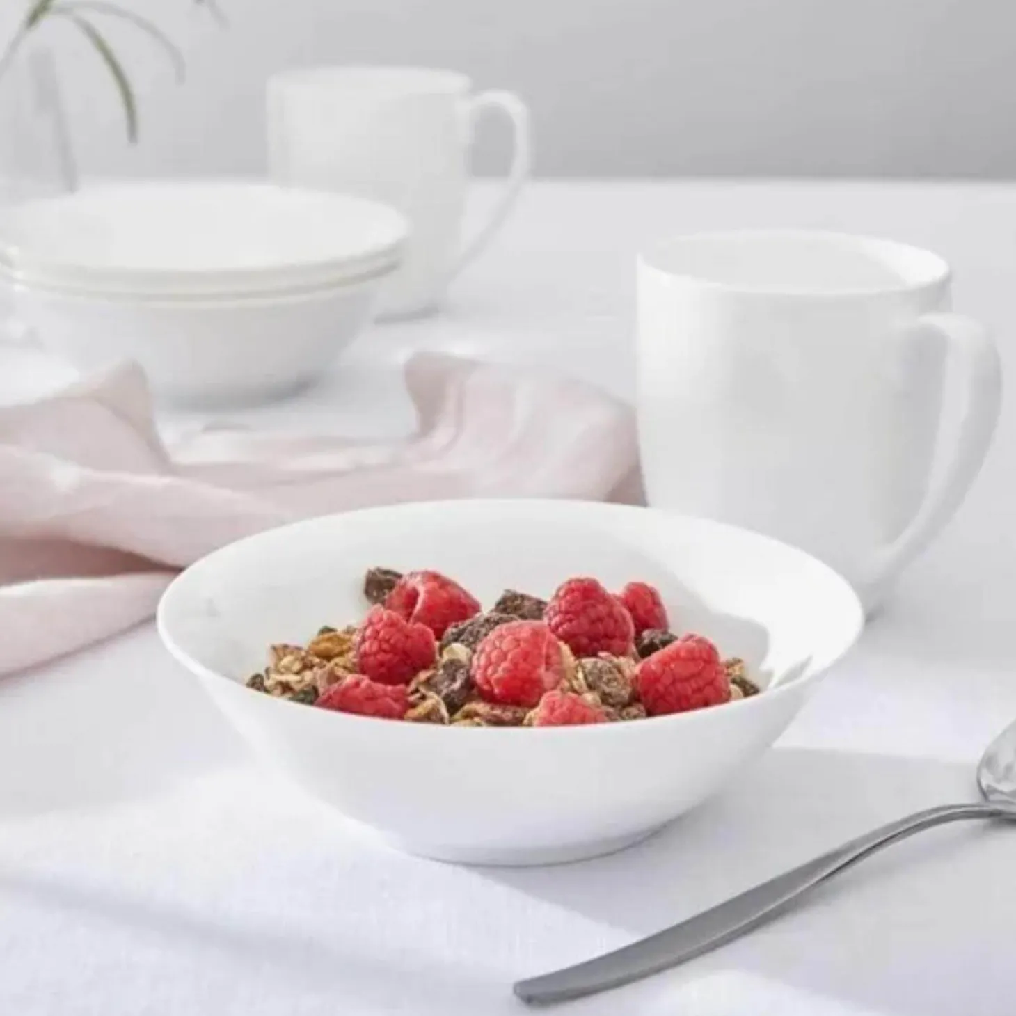 Royal Worcester presents the Cereal Bowl from the classic and elegant Serendipity range, ideal for both everyday dining and special occasions, thanks to its minimalist design. Each piece is made from high-quality fine bone china with a brilliant white finish. This collection beautifully complements other items available in the Serendipity range.