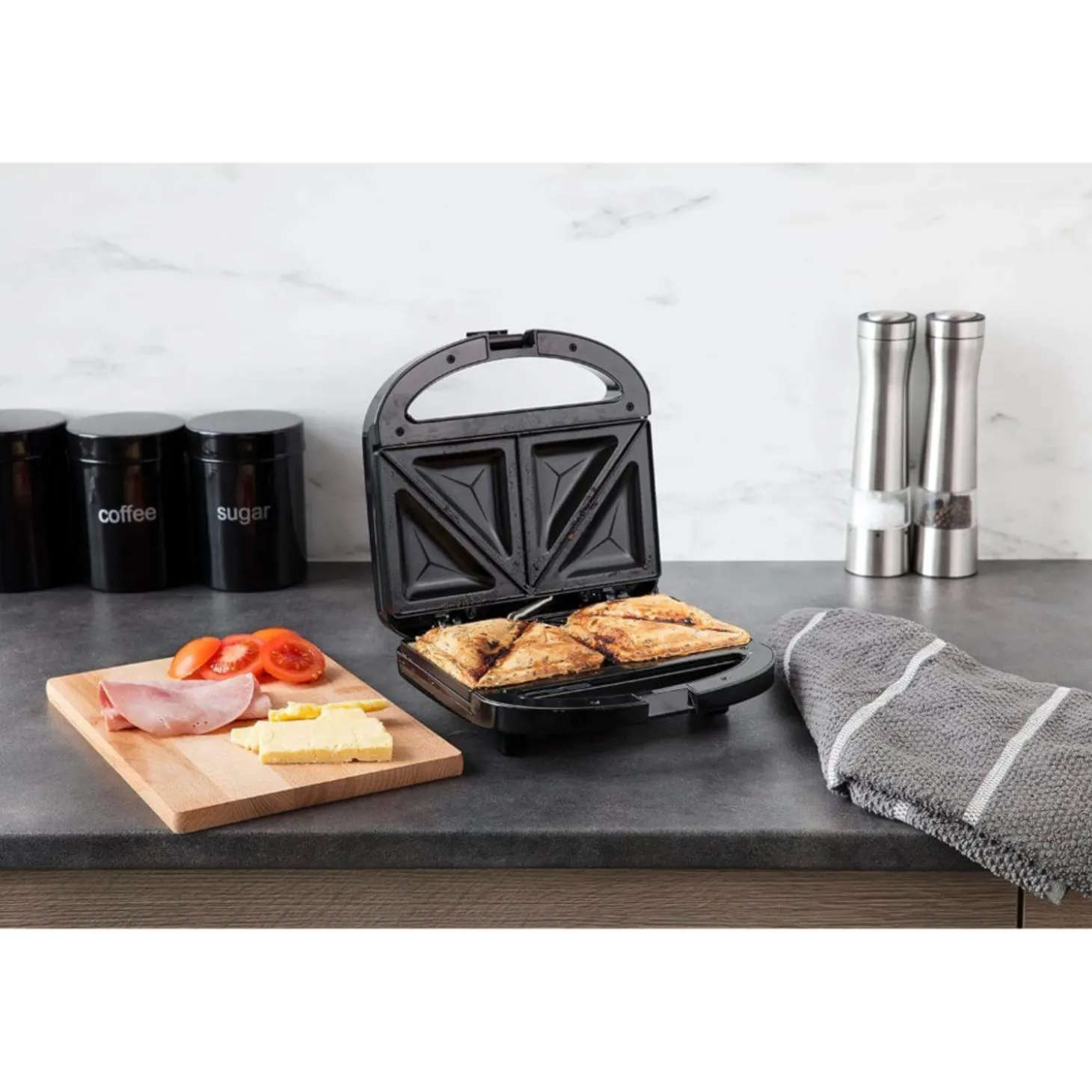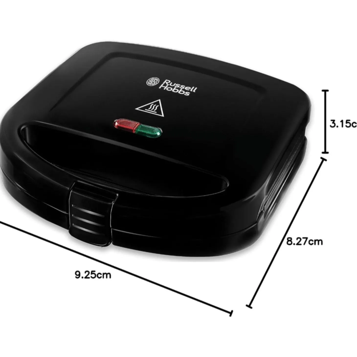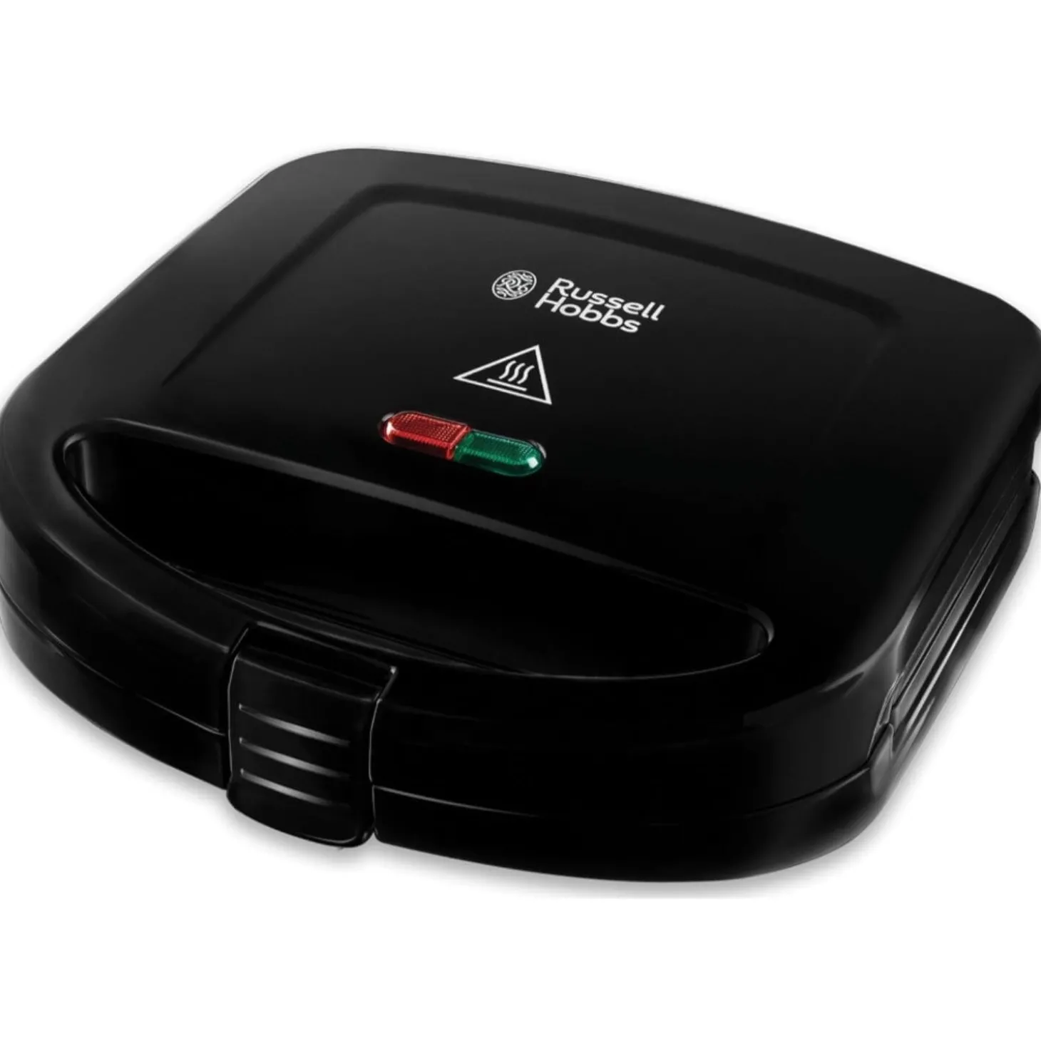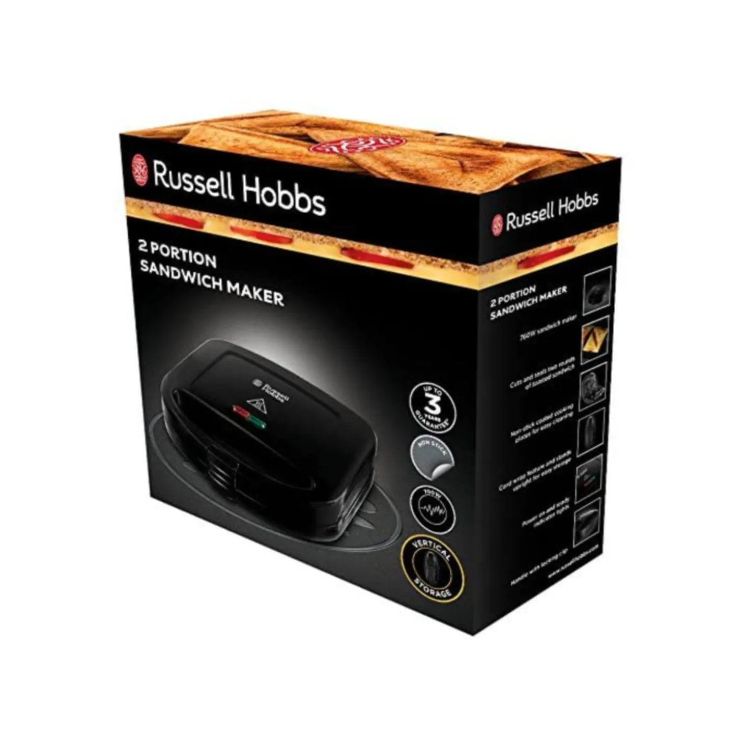 Russell Hobbs presents the 2-Portion Electric Sandwich Toaster in Black, Perfect for making delicious toasted sandwiches with a crispy finish. Enjoy a classic cheese and ham or a dessert toastie with melted chocolate and fruit. A great toasted sandwich maker for all those who love a toastie for lunch!
