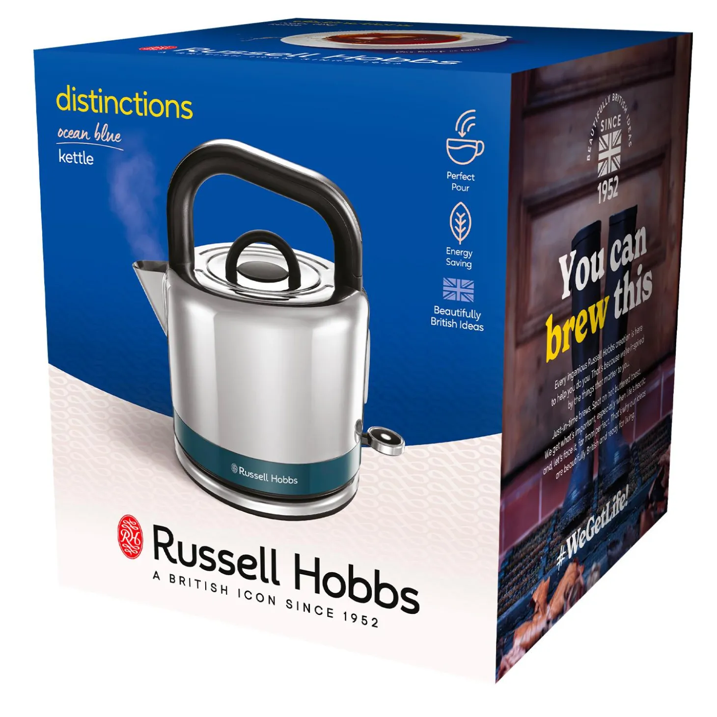 Russell Hobbs presents the Distinctions Kettle in Ocean Blue. This modern contemporary kettle is as functional as it is attractive, able to hold 1.5 litres of water, which is sufficient to make up to six cups making it ideal for larger households. Rapid boil function that allows you to boil one cup of water in just 47 seconds. A great retro look kettle for all kitchens.