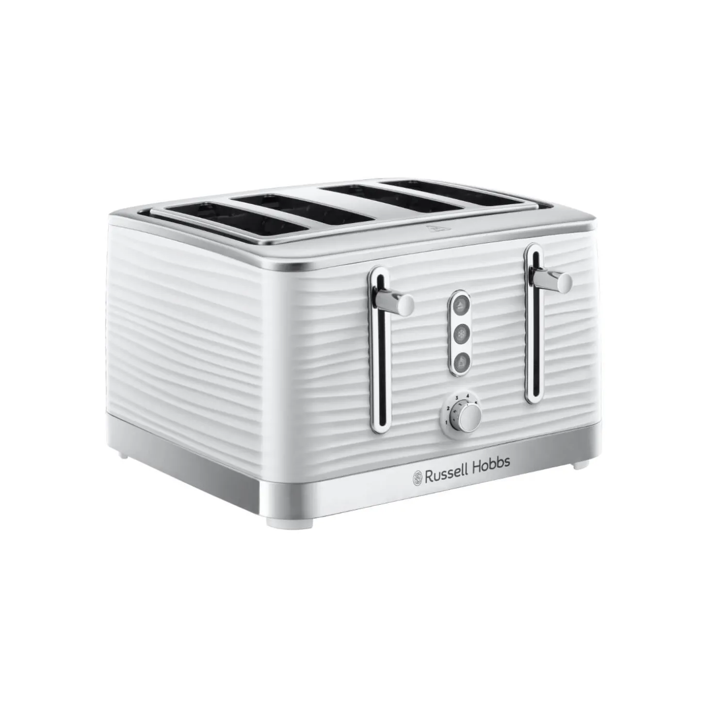 Bring style and convenience to your kitchen counter with the Russell Hobbs Inspire 4-Slice Toaster in White. The textured housing looks sleek while delivering perfect toast every time. Its seven adjustable browning settings and high-lift function provide perfect customization for your toasting needs.