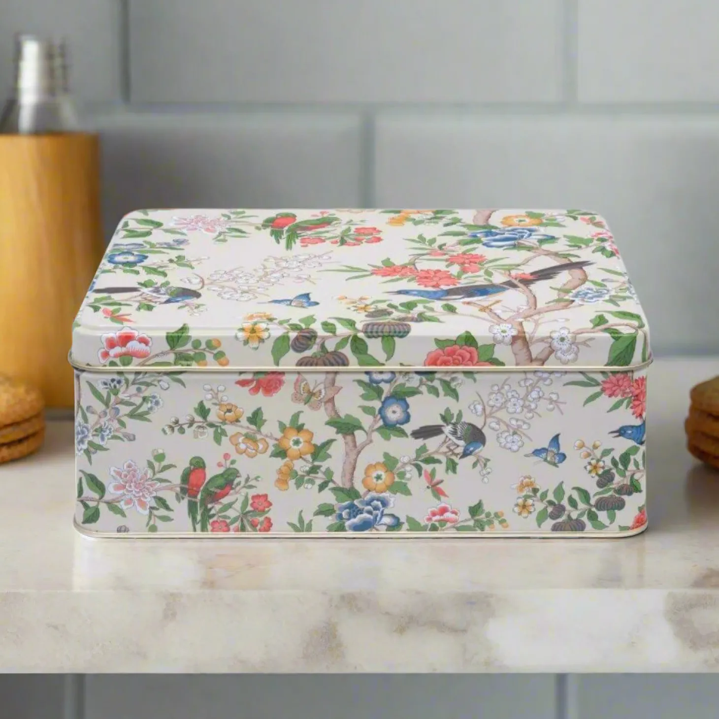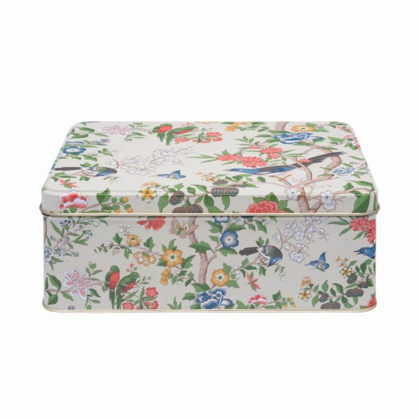 Sanderson presents the ‘Chinolserie’ Deep Rectangular Tin. This delightful storage tin is decorated with illustrations of lovely flowers, chinolserie is related to the Rococo style. Perfect to store your biscuits, crackers or anything that you wish including memorabilia and trinkets. This pretty tin will make an ideal gift or a treat for yourself.