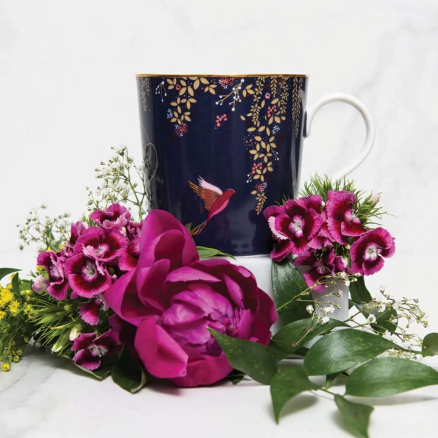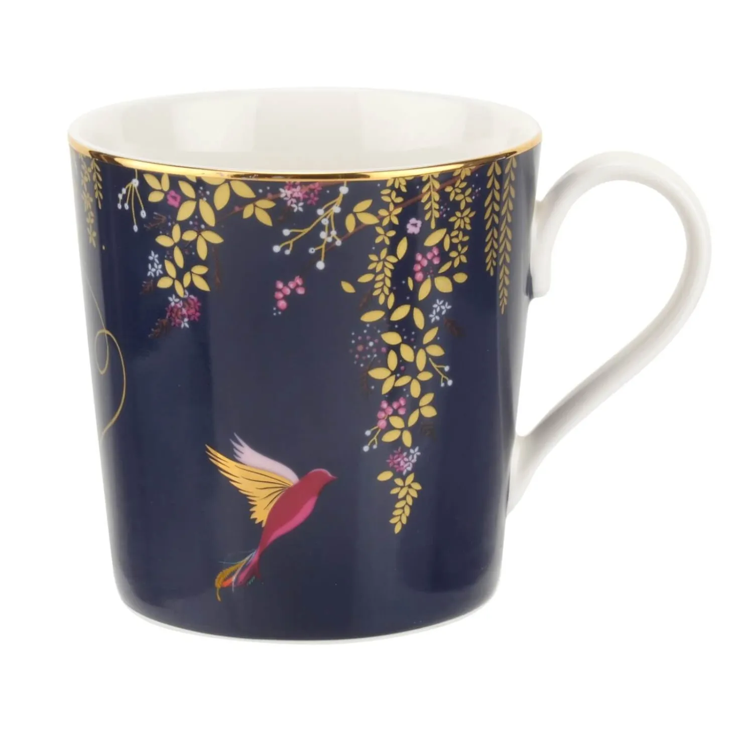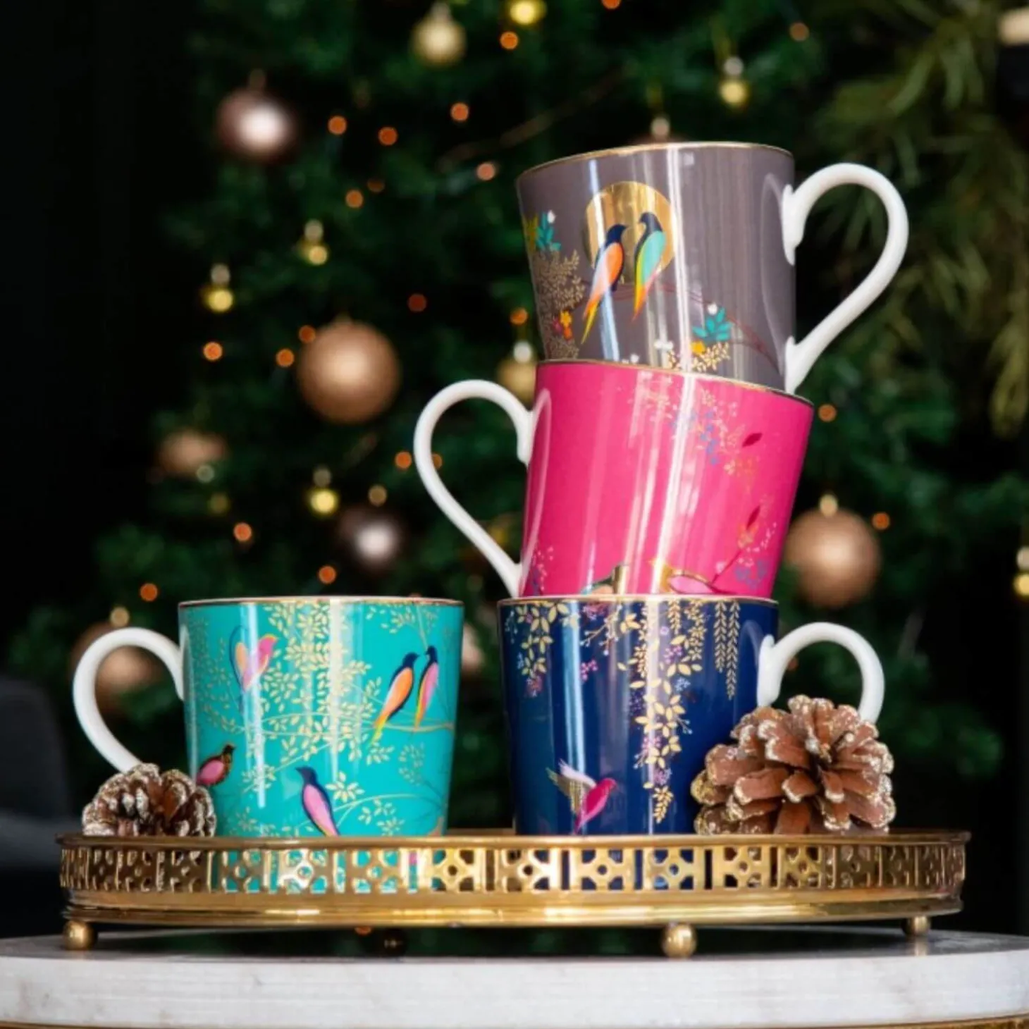 Beautifully crafted from fine china by Portmerion and perfectly complementing the rest of the Chelsea Collection from Sara Miller. This set of 4 mugs has a unique style synonymous with the lifestyle brand. The mugs come in four different designs Green Birds, Pink Birds, Navy Hummingbird and Birds in Moon with luxurious golden accents and colour tones featuring birds and foliage, perfect for your morning coffee and afternoon tea. These stunning mugs come beautifully gift boxed making them a lovely gift or a treat for yourself.