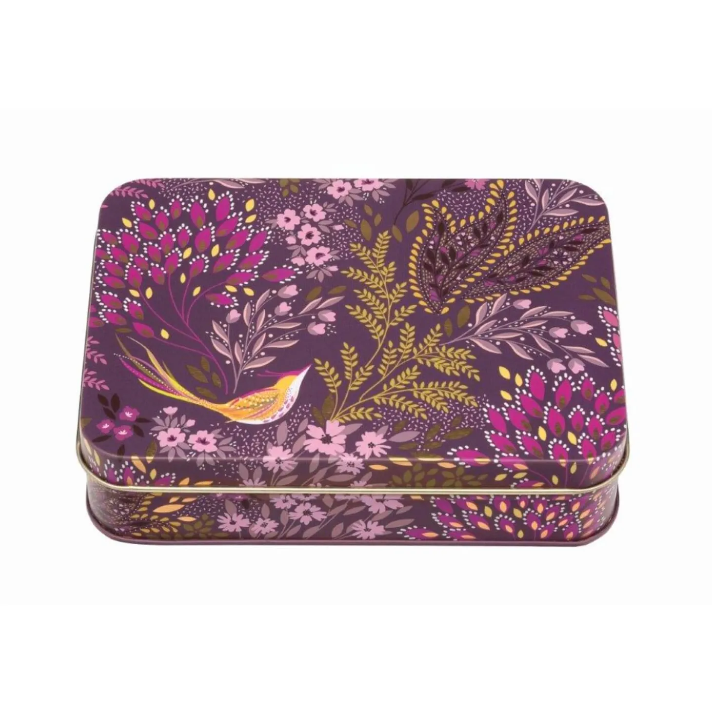 Sara Miller London presents the Haveli Garden Small Rectangular Tin in the Plum Songbird design, beautifully decorated with stunning foliage and birds with accents of gold. Ideal for storing treats, keepsakes and more. This pretty tin would make a delightful gift or a treat for yourself.