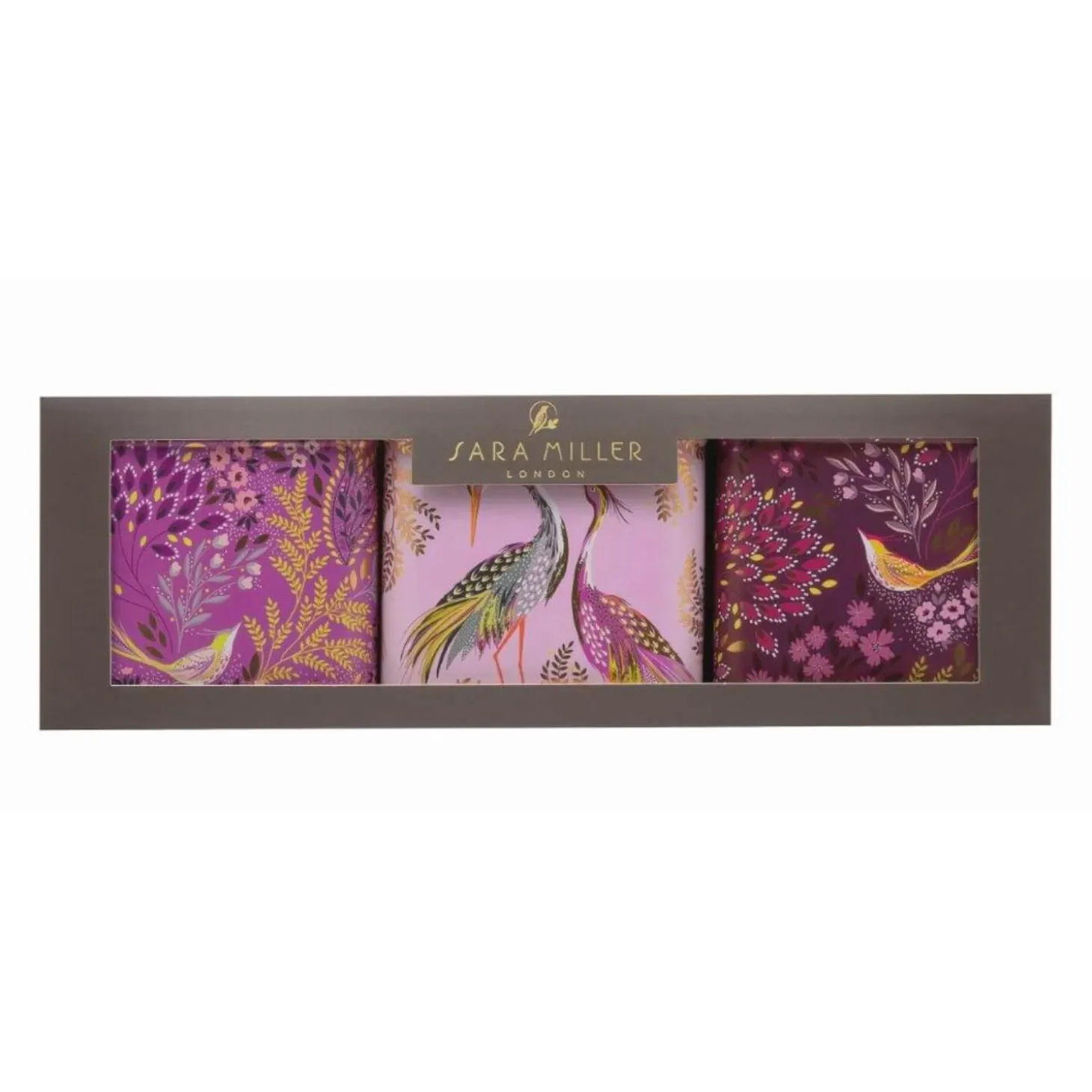Sara Miller presents the Set of 3 Square Storage Caddies as part of the Haveli Garden Collection. Three different stunning designs and colours featuring birds and foliage on mauve, pink and plum backgrounds with gold accents. The caddies will certainly bring a luxurious feel and colour to any countertop making them a lovely gift or a treat for yourself.