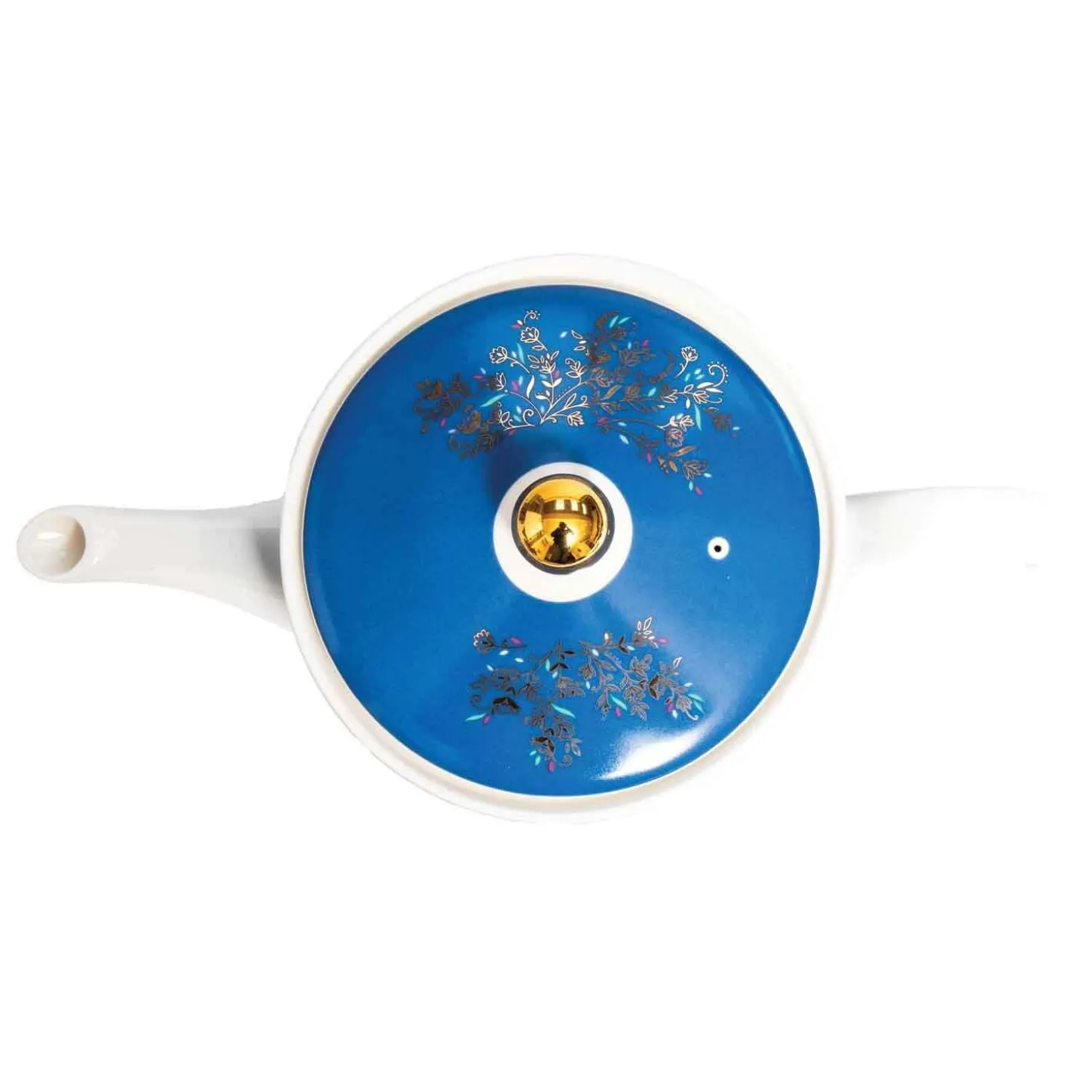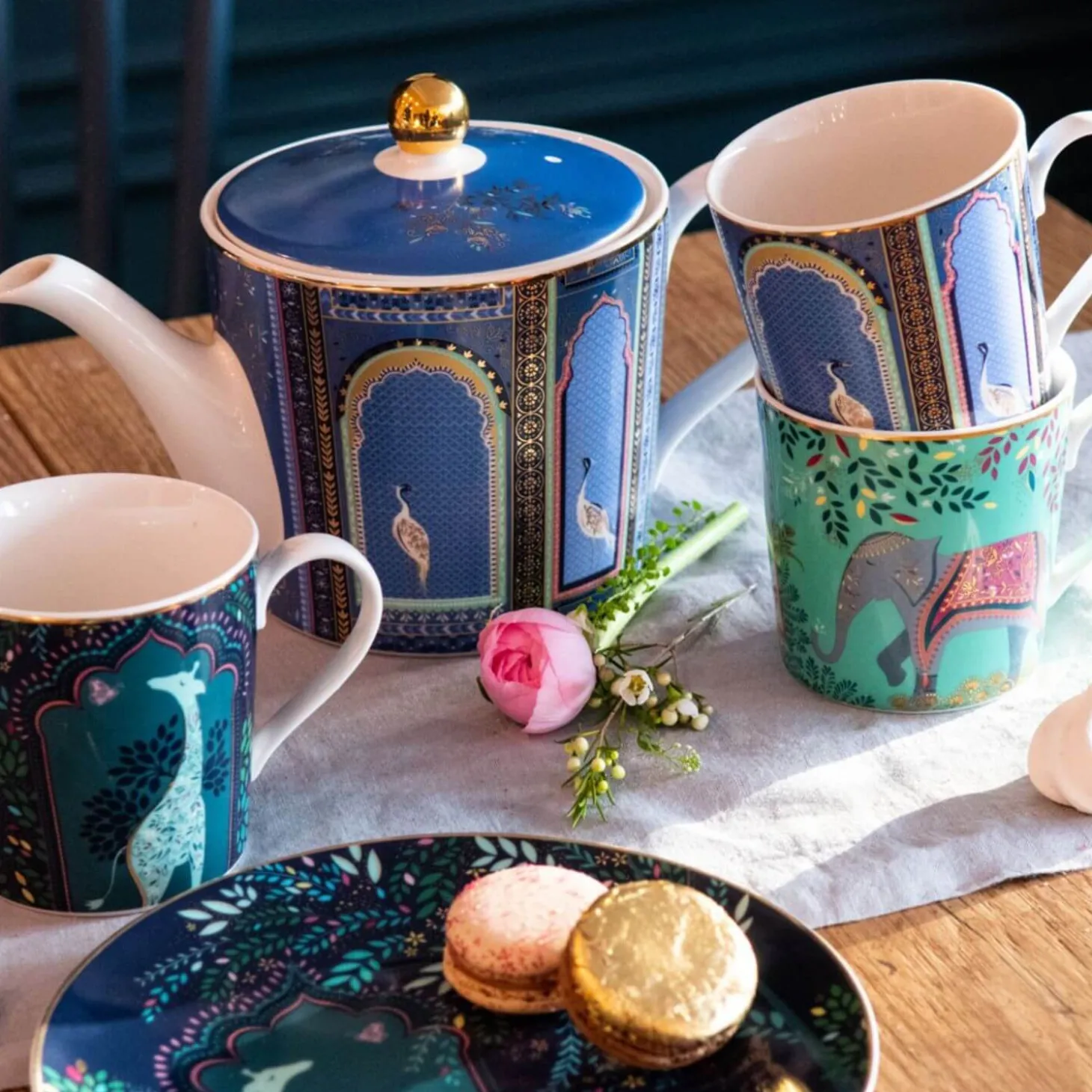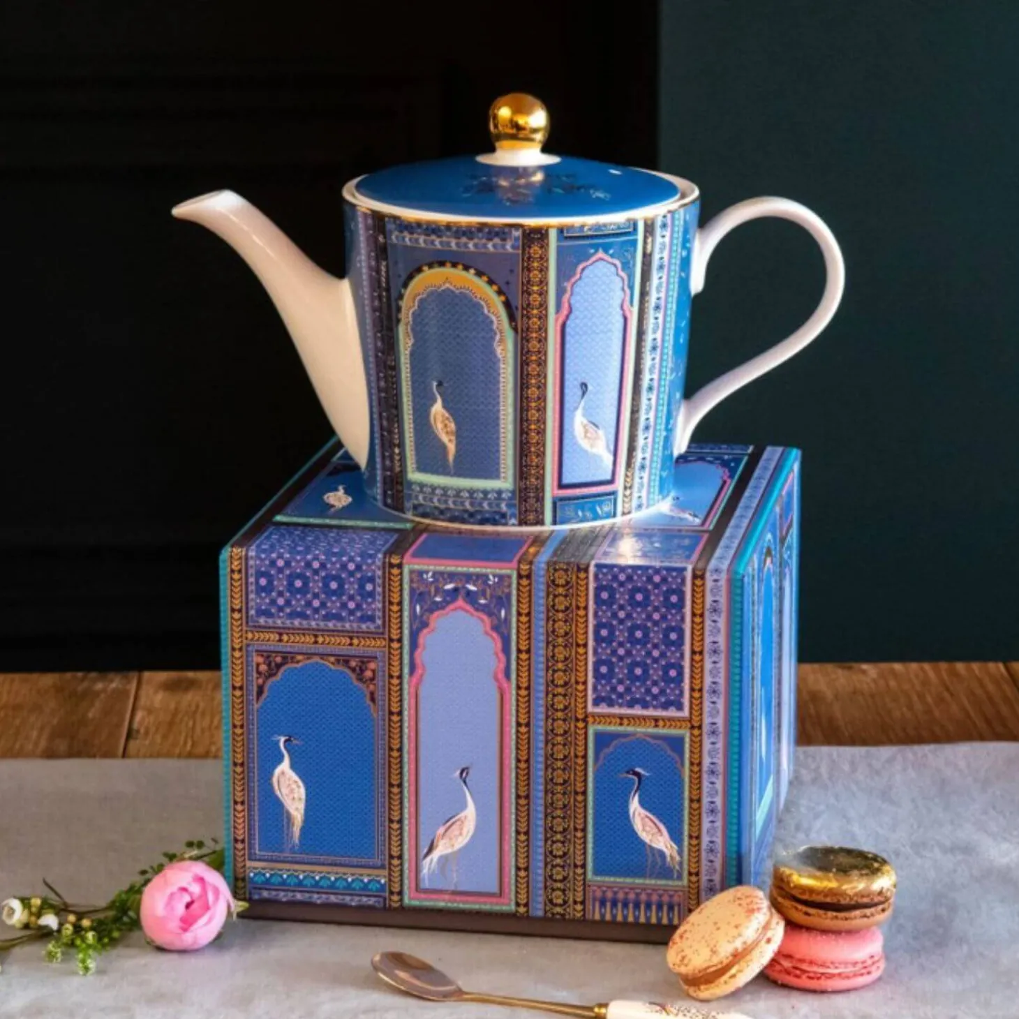 A stunning 4 Cup teapot in the Lattice Windows design by Sara Miller London is part of her India Collection and features beautiful cranes in different shades of vibrant blue lattice windows embellished with rich 22-carat gold detailing. Presented in a lovely complementing gift box, this stunning teapot is the perfect addition to any teatime, and would make a delightful gift for tea lovers or a treat for yourself.