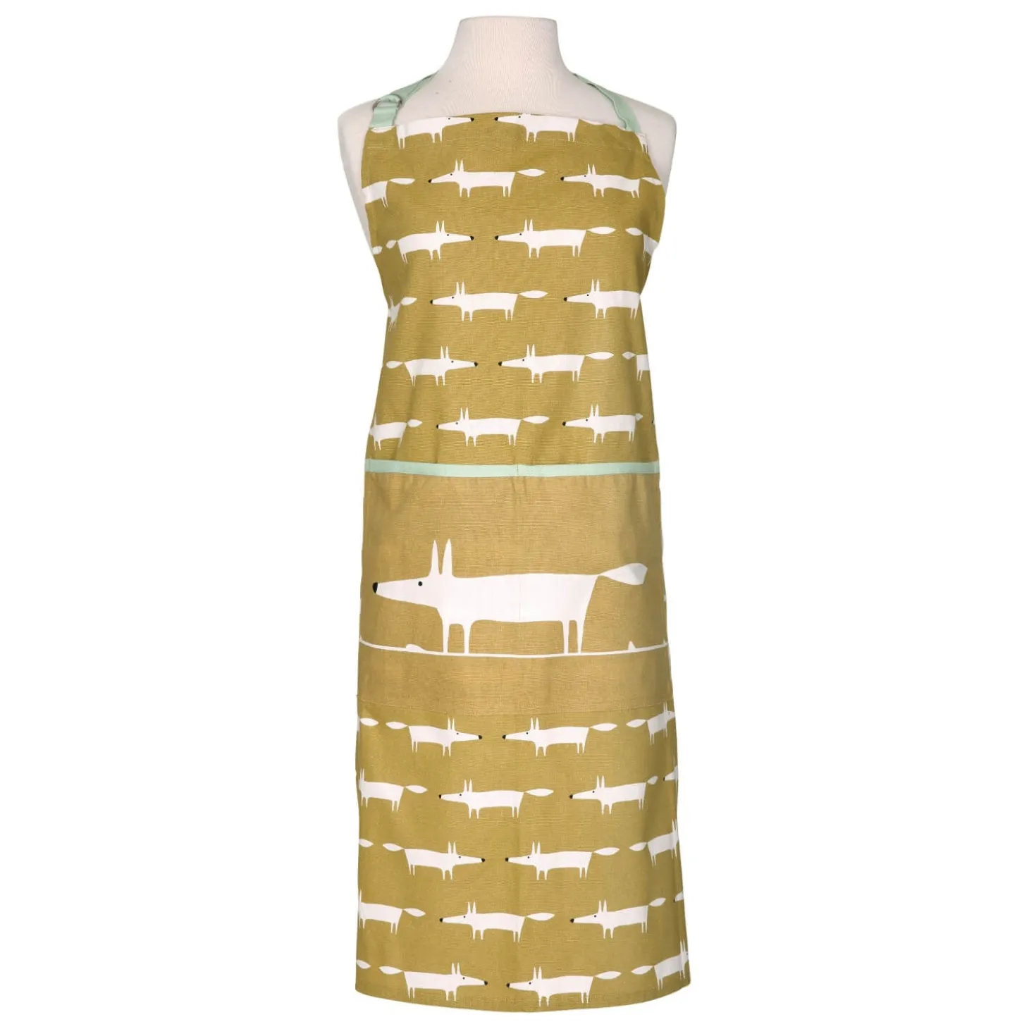 Scion Living presents this bright Mr Fox Apron in Ochre. Perfect for keeping your clothes protected whilst also looking stylish in the kitchen. With contrasting pastel green binding, an adjustable neck strap, an extra-long waist tie and two large front pockets, this is an ideal gift or treat for bakers and cooks alike. Mix and match with other items in the Scion Living Collection.