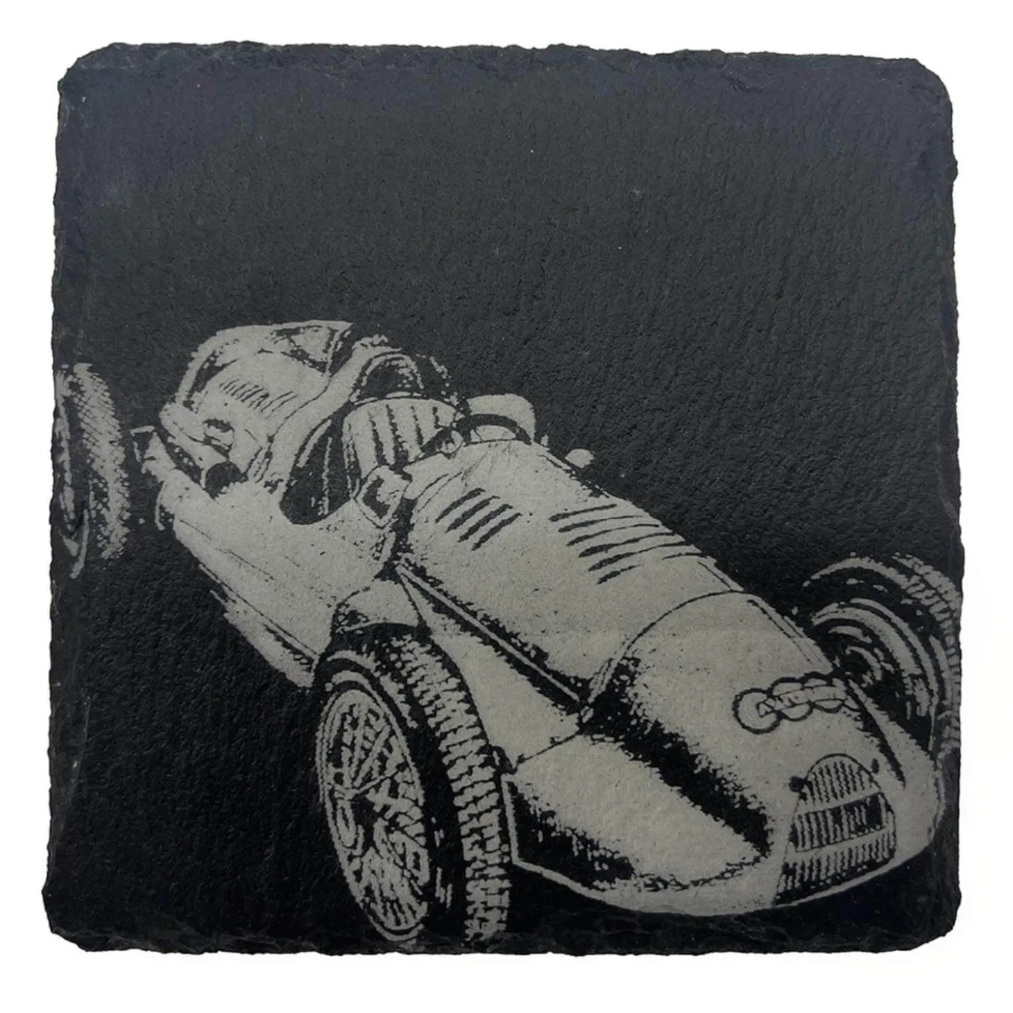 Selbrae House presents their ‘Vintage Racing Car’ Slate Coaster, beautifully engraved with a racing car of years gone by. Perfect for protecting all your table tops from hot drinks or water marks, the underside is padded to prevent scratches. An attractive coaster for your home bar or lounge area.