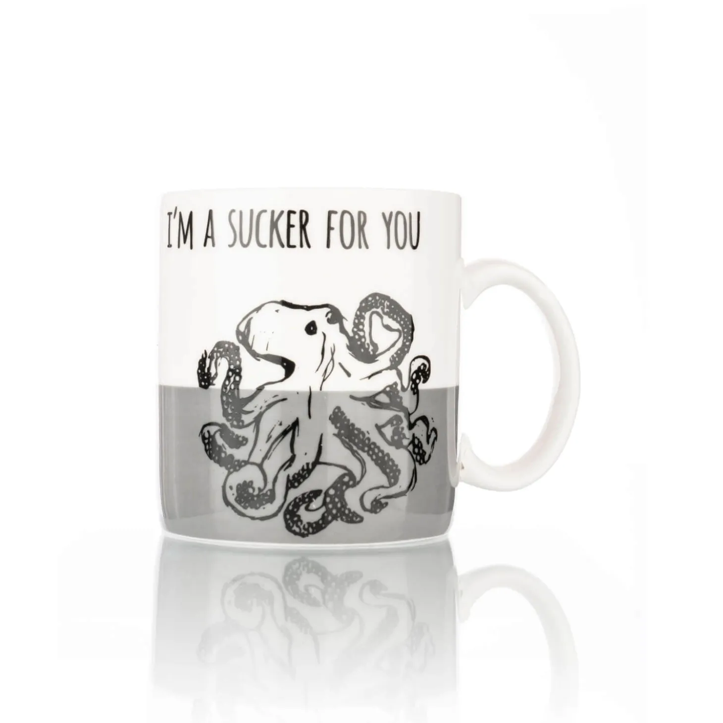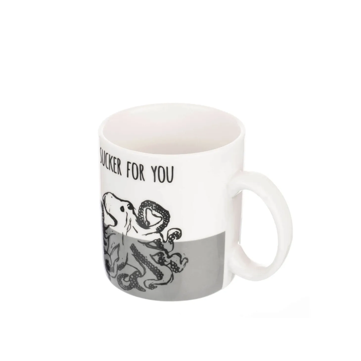 Featuring a humour design this ‘I’m a Sucker for You’ mug from Siip has been created using high-quality new bone china with an Octopus sketch on the front against a grey and white background.