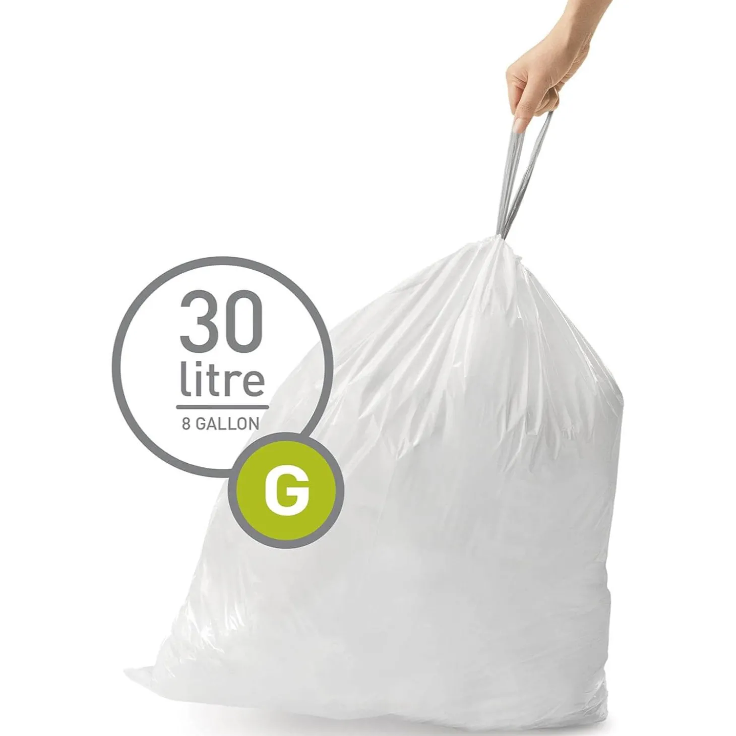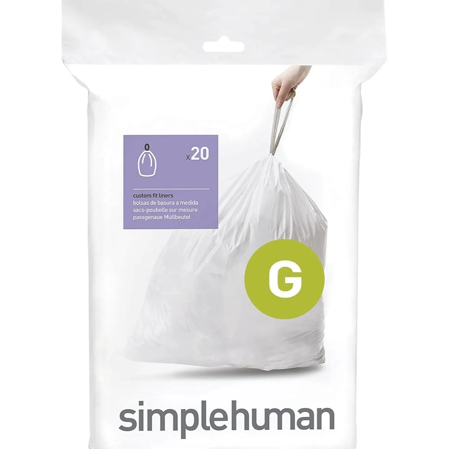 Each bin liner created by Simplehuman is designed specifically for each model, which ensures that there is no excess overhang, bunching or slipping. Every custom-fit G liner features a durable double seam and extra thick plastic construction to prevent against ripping and tearing. They also include strengthened drawstring handles to make lifting and tying much easier.