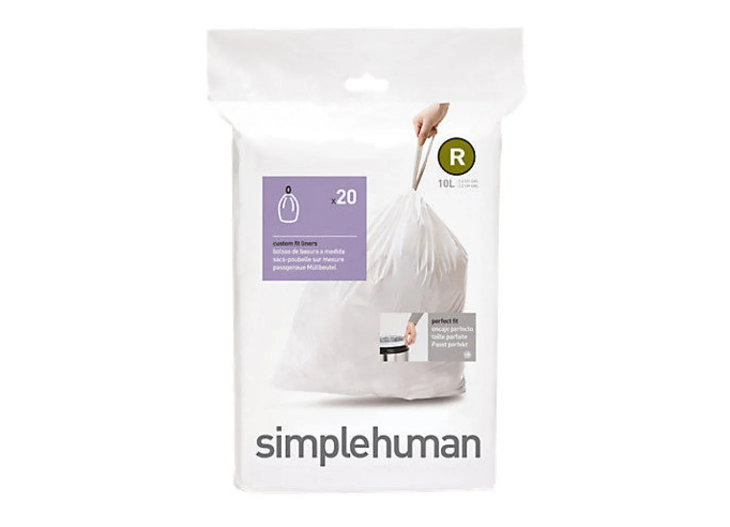 Each bin liner created by Simplehuman is designed specifically for each model, which ensures that there is no excess overhang, bunching or slipping. Every custom fit R liner features a durable double seam and extra thick plastic construction to prevent against ripping and tearing. They also include strengthened drawstring handles to making lifting and tying much easier.