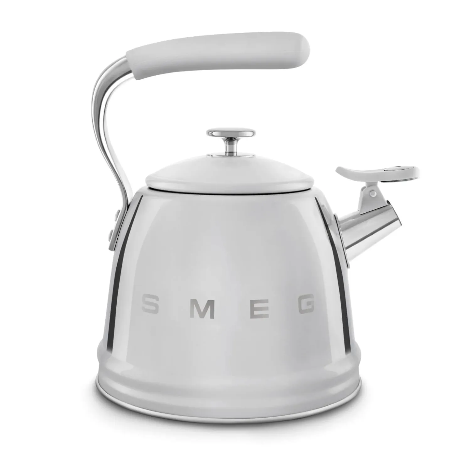 Smeg presents the Whistling Stove Top Kettle in Chrome, featuring their signature iconic retro style that pairs beautifully with other products in their collection. With a generous capacity of 2.3 litres, this kettle is perfect for families or larger gatherings, allowing you to brew up to nine cups of tea or coffee at once. Bring a retro charm to your kitchen that complements any design style.