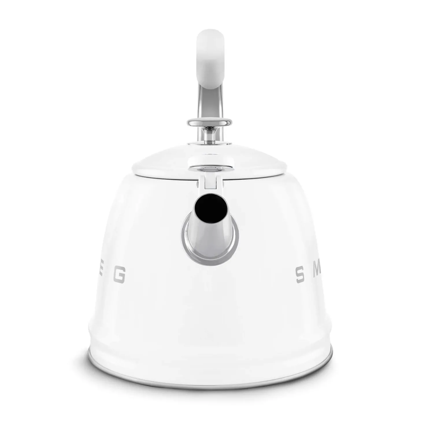 Smeg presents the Whistling Stove Top Kettle in White, featuring their signature iconic retro style that pairs beautifully with other products in their collection. With a generous capacity of 2.3 litres, this kettle is perfect for families or larger gatherings, allowing you to brew up to nine cups of tea or coffee at once. Bring a retro charm to your kitchen that complements any design style.