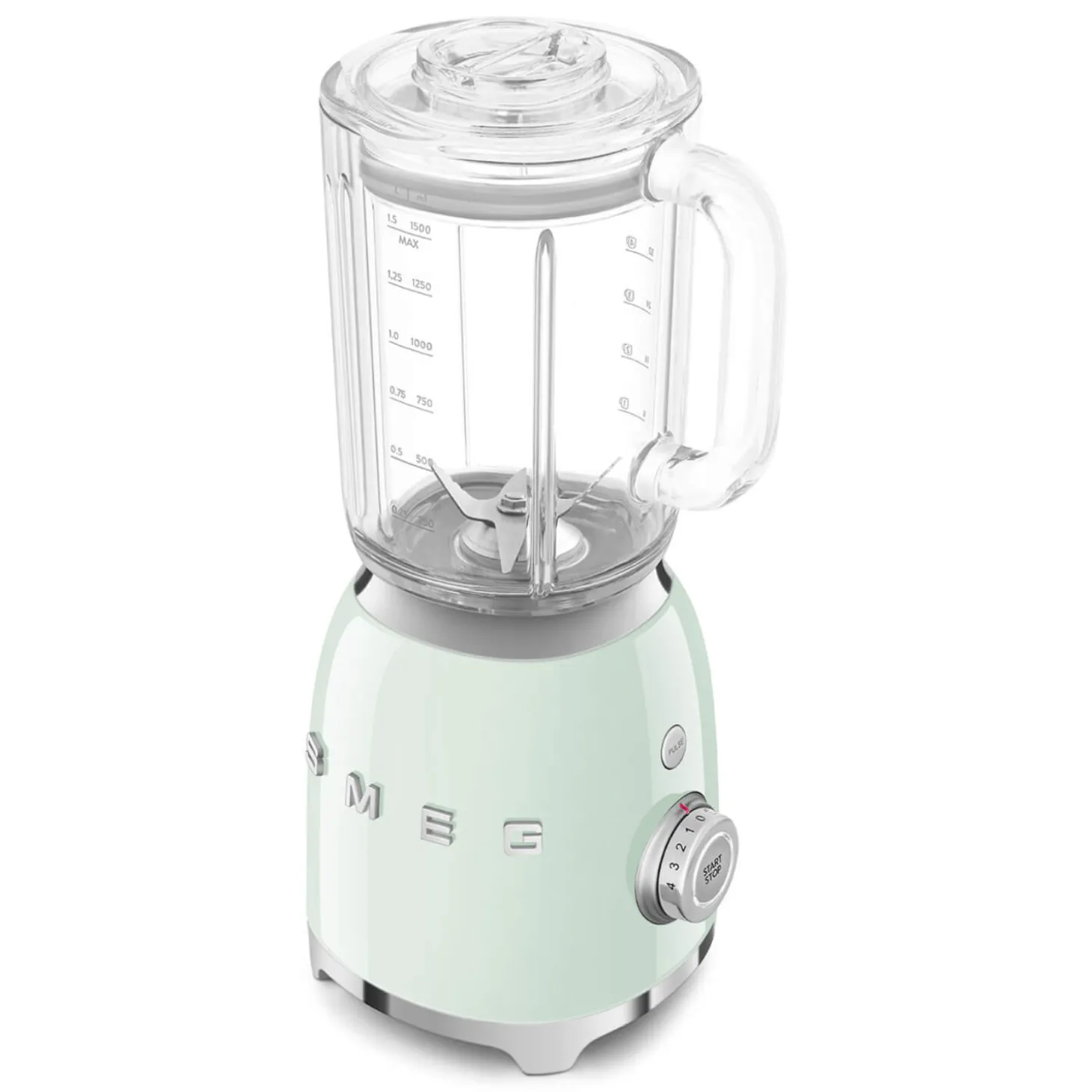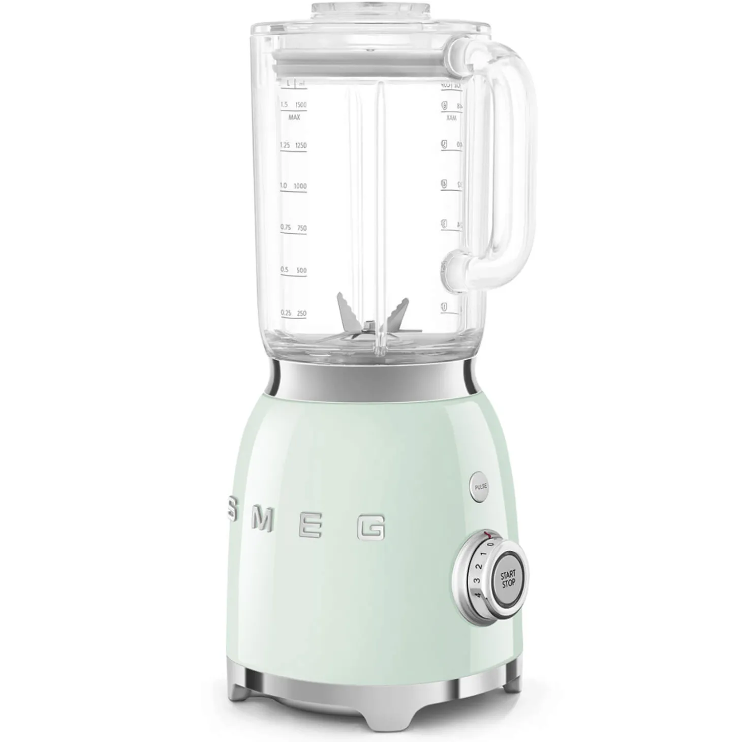 Enjoy fresh smoothies, sauces or even whip something up for dessert with this retro-style Smeg BLF03PGUK Blender in Pastel Green. With a large 1.5 litre capacity, which ensures you are able to serve delicious drinks when spending time with friends and family! The powerful 800W power output ensures the blades will blend through anything from ice to nuts so you are always guaranteed smooth mixtures after use. Other items are also available in this range.Â