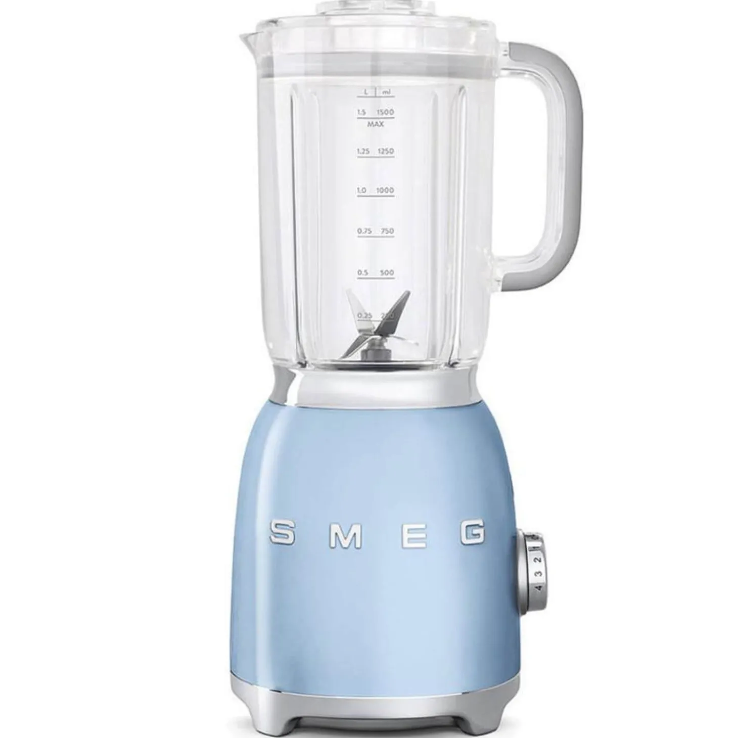 Enjoy fresh smoothies, sauces or even whip something up for dessert with this retro-style Smeg BLF03WHUK Blender in Pastel Blue. With a large 1.5 litre capacity, which ensures you are able to serve delicious drinks when spending time with friends and family! The powerful 800W power output ensures the blades will blend through anything from ice to nuts so you are always guaranteed smooth mixtures after use. Other items are also available in this range.Â