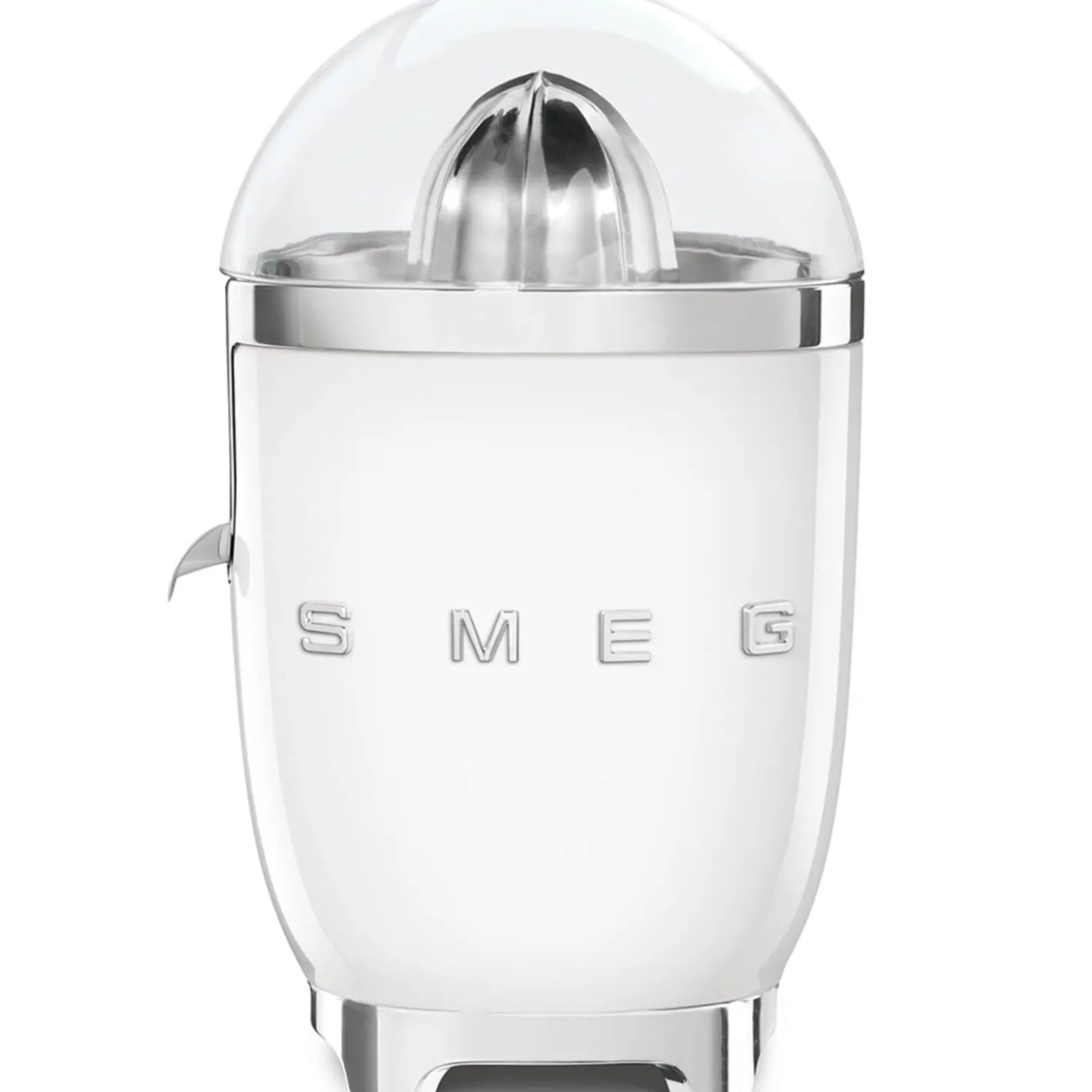 Smeg presents the CJF11 Citrus Juicer in White, part of their popular Retro collection. This juicer is designed to efficiently squeeze both large and small fruits, ensuring every last drop of juice is dispensed directly into your glass or cup with minimal effort. The lid and bowl are made from Tritan™ Renew material, which contains 50% certified recycled content. The innovative lid can also serve as a bowl for holding fruit and peel. Additionally, the pop-up spout prevents juice from dripping, allowing for clean and easy dispensing. A variety of complementary Smeg products are available, enabling you to mix and match for a perfect kitchen collection.
