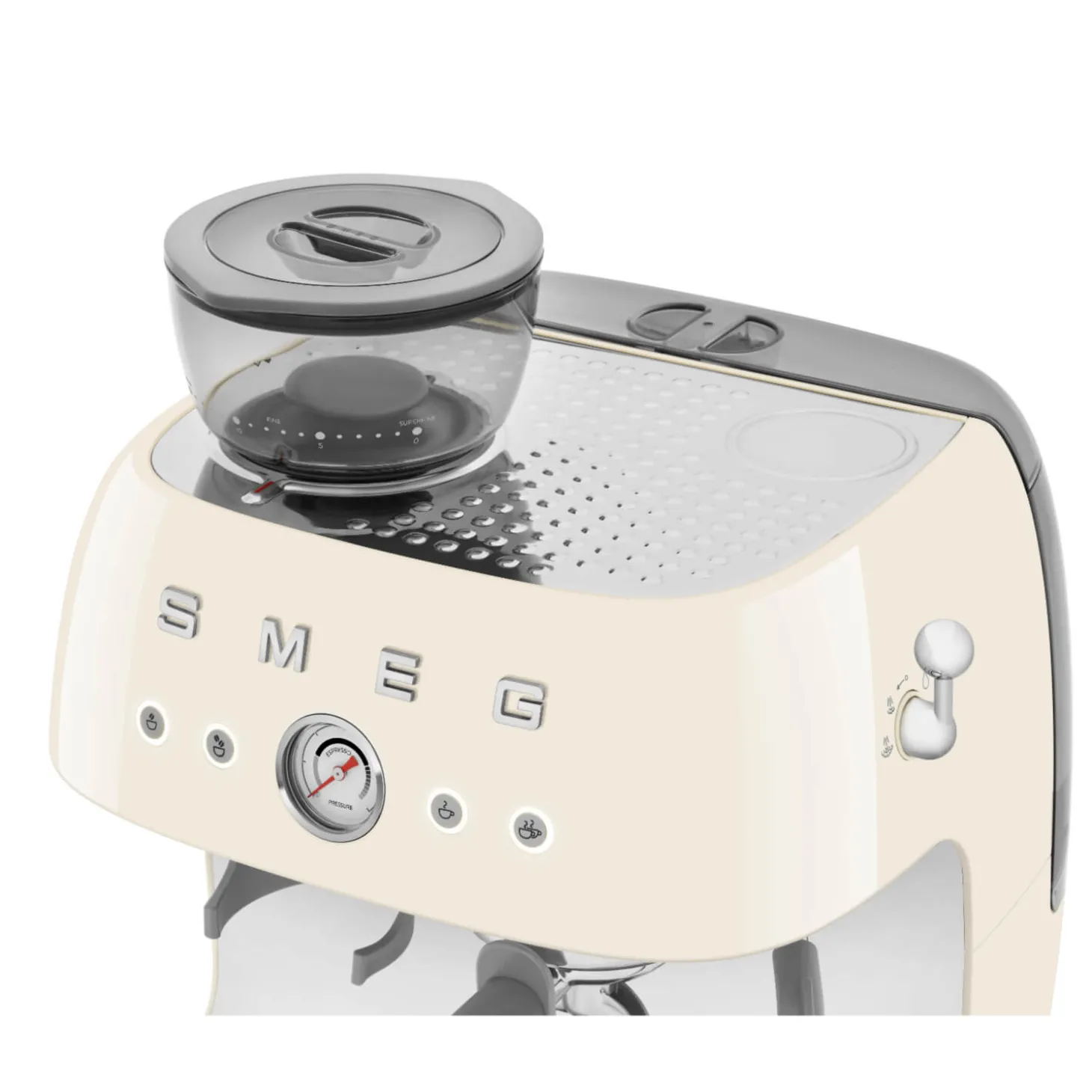 Experience the best in-house barista experience with the Smeg EGF03 machine. It is equipped with various features including stainless steel conical burr grinders that evenly grind coffee beans to preserve the flavour and aromas. Also included is a 58mm filter holder, a professional steam wand and a pressure gauge dial that allows you to monitor the espresso extraction throughout the brewing process. - Thermoblock Heating