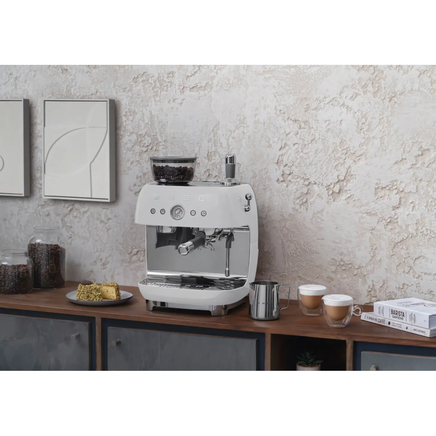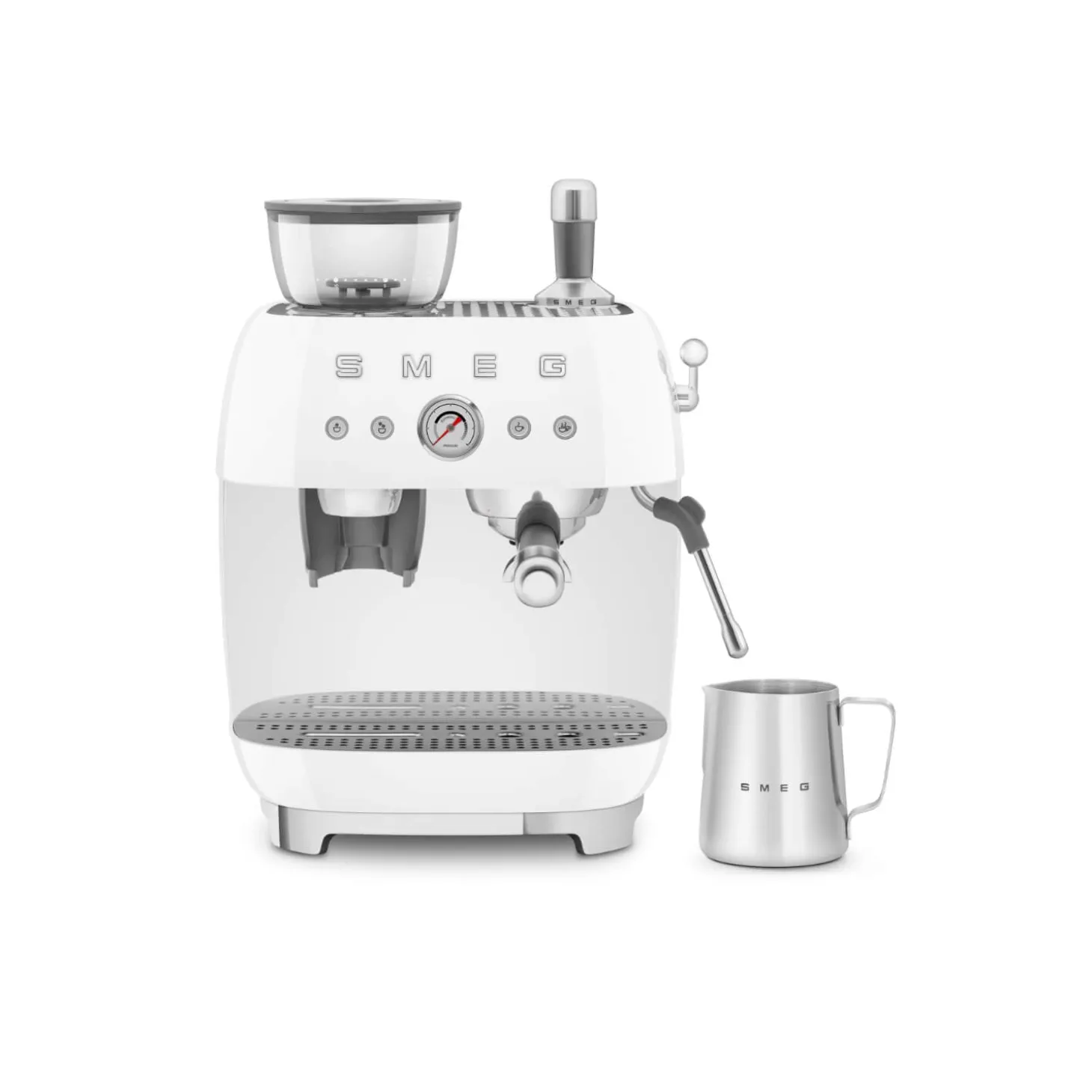 Smeg introduces the Bean-to-Cup Espresso Coffee Machine in a stunning bright white. Its charming 1950s retro style will enhance any kitchen decor, allowing you to become your own barista and impress your guests with their favourite coffee in the comfort of your own home.