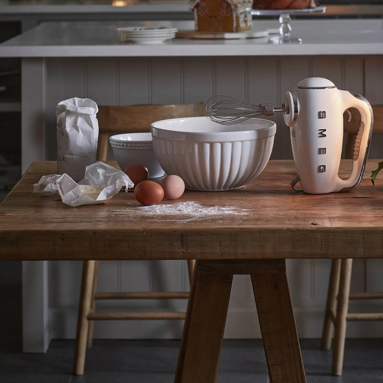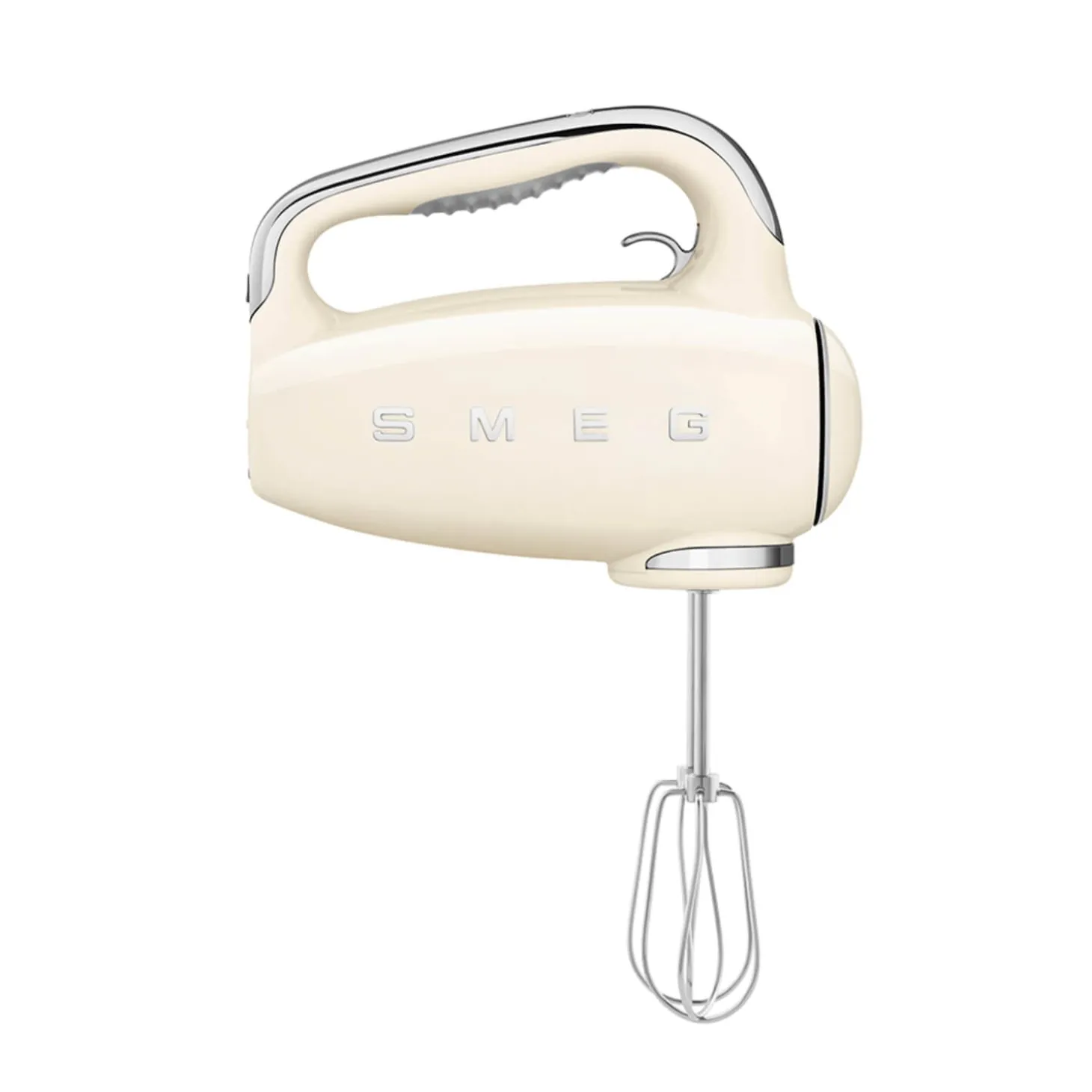 Each hand mixer has been designed by Matteo Bazzicalupo and Raffaella Mangiarotti paying close attention to every detail. This on-trend hand mixer perfectly complements other Smeg appliances thanks to their curved edges, smooth contours and chrome accents that stand out against the glossy cream finish.