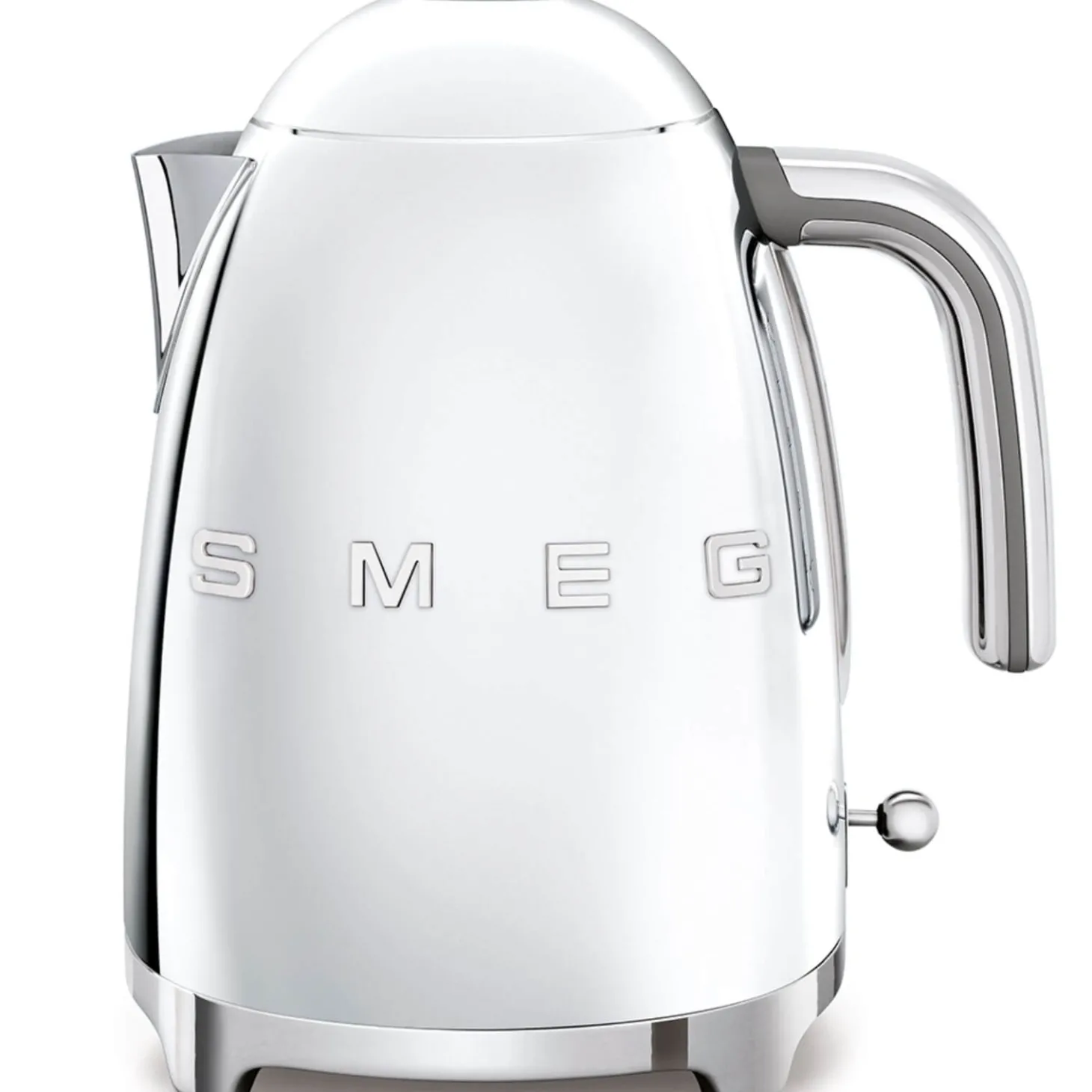 The Smeg kettle in chrome is both stylish and practical featuring the elements of contemporary design with modern functionality. With a 1.7 litre capacity, this item makes a perfect choice for large households and features a variety of useful functions including a 360° swivel base, automatic shut-off at 100°C, water level indicator and soft-opening lid.