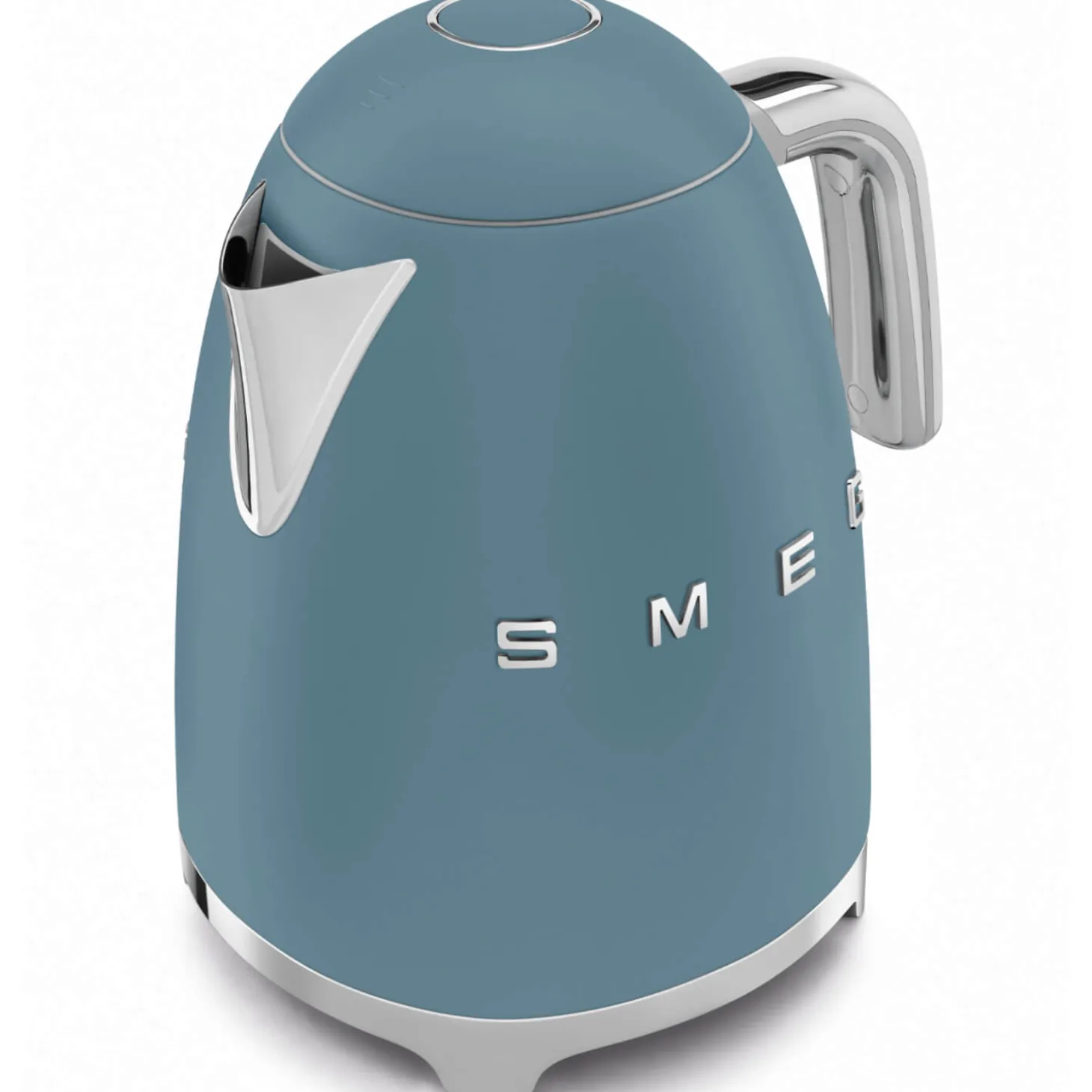 Smeg presents the Jug Kettle in Matte Storm Blue, a stylish and practical addition to their 50’s Style Retro range. This kettle combines contemporary design with modern functionality. With a capacity of 1.7 litres, it is an ideal choice for large households. It features several convenient functions, including a 360° swivel base, automatic shut-off at 100°C, a water level indicator, and a soft-opening lid.